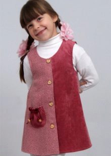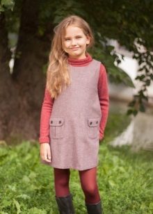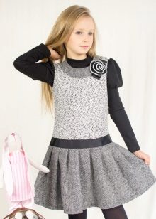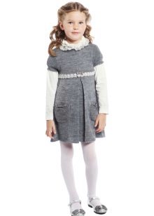 Winter and autumn sundresses - a completely separate type of clothing for the girl, which is warm and very beautiful. These can be models made of wool, fleece, leather or suede. This dress-dress will look cute, but copes with its main task - to warm the child.