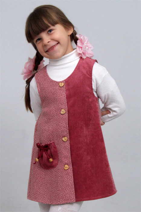 In the summer, the sundress is self-sufficient, but if necessary, in a cool evening the child can put on a jacket or shirt, and in the rain add a light raincoat to the sundress.