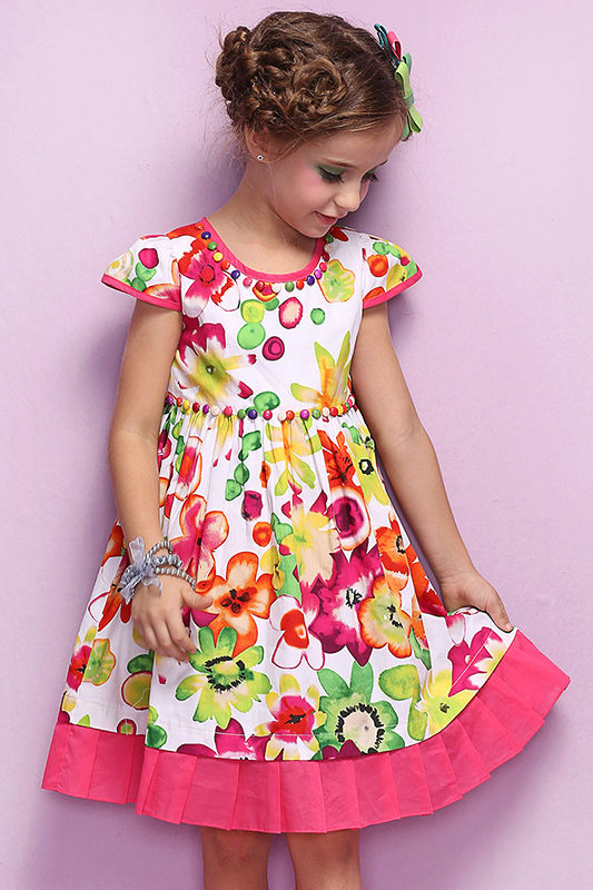 There are always bright colors in fashion - these can be either monochrome models or sundresses with a color print. Depending on the age of the girl, it can be like very naive patterns and patterns, or prints copied from adult clothing: diamonds and stripes, the goose foot, and ultra-fashionable ombre-style divorces.