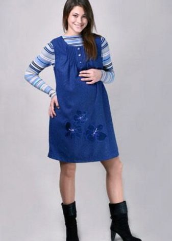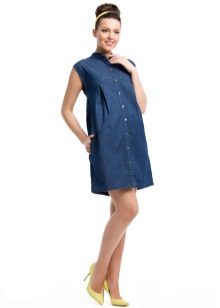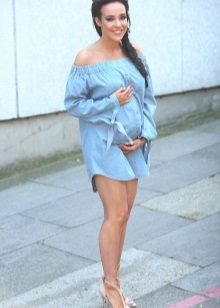 The wardrobe of a pregnant woman is a separate topic for conversation. It is difficult to pick it up, because clothes should be comfortable, beautiful, loose, light, consist of natural materials, smooth rounded female forms. An excellent option for light clothing for a pregnant woman is a denim dress. We will talk about him.