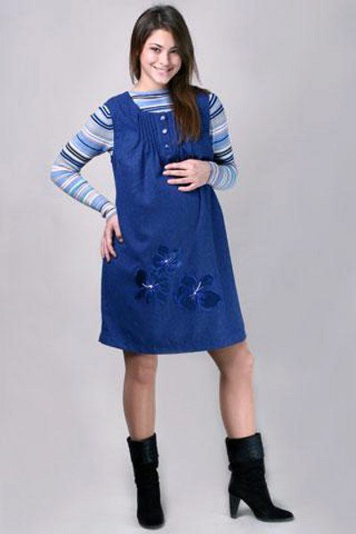 Sundress-trapeze gives freedom and allows you to feel the comfort of even a pregnant woman. The belly in such a sundress will not be overtightened, and when choosing long models you can hide swelling on the legs. Summer dress should have sundresses made of thin denim, which has a cotton texture. For a cooler weather under a sundress you can wear a turtleneck.