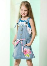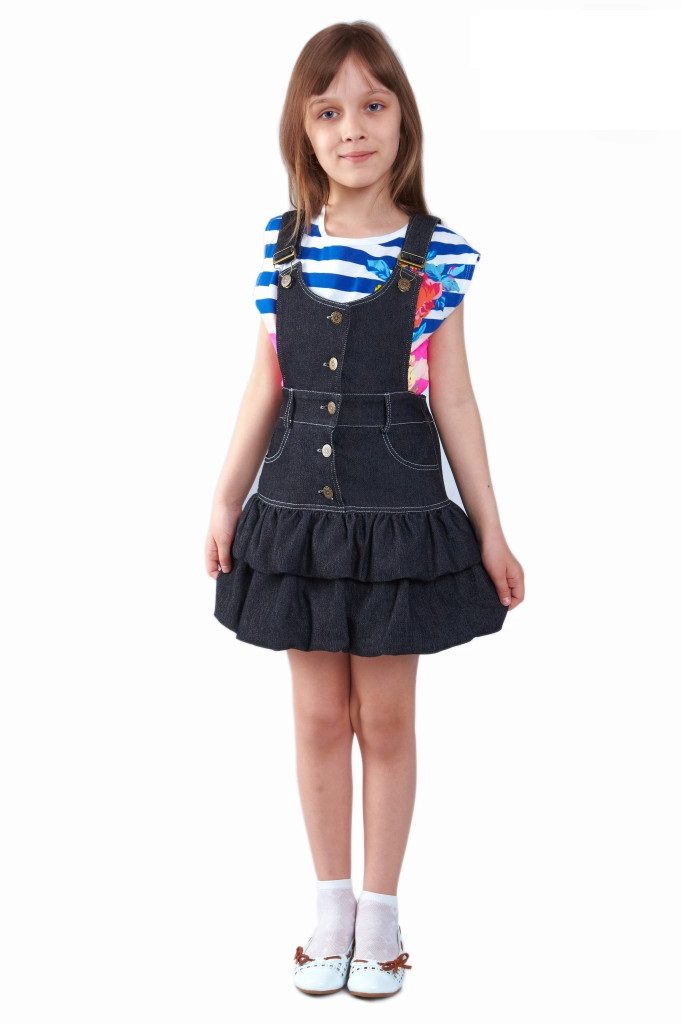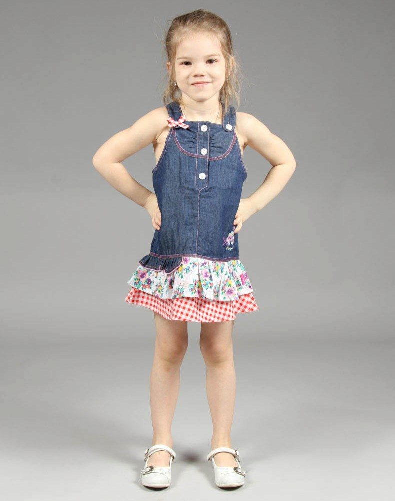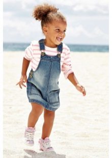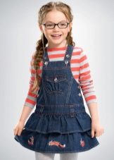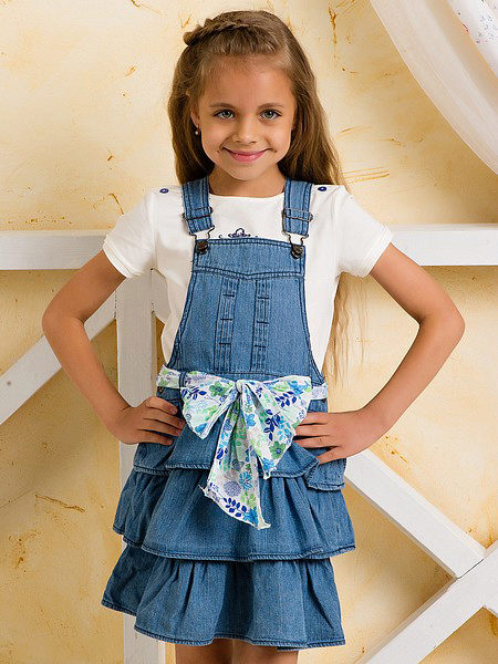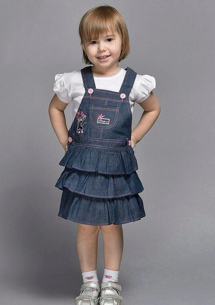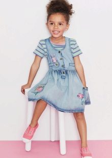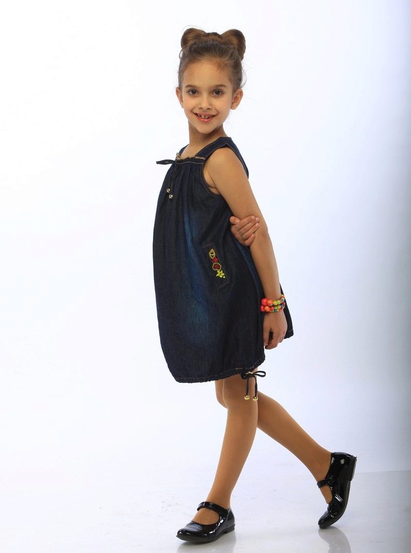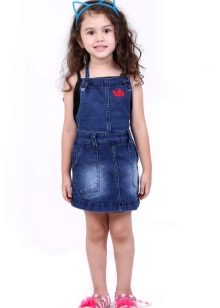 Denim sundress is perfect for walking and playing in the fresh air. In a jeans sundress, you can go to school, to visit, to a festive event. Denim sundress goes well with other clothes. He always looks fashionable, stylish and relevant.