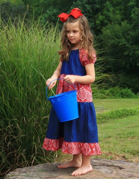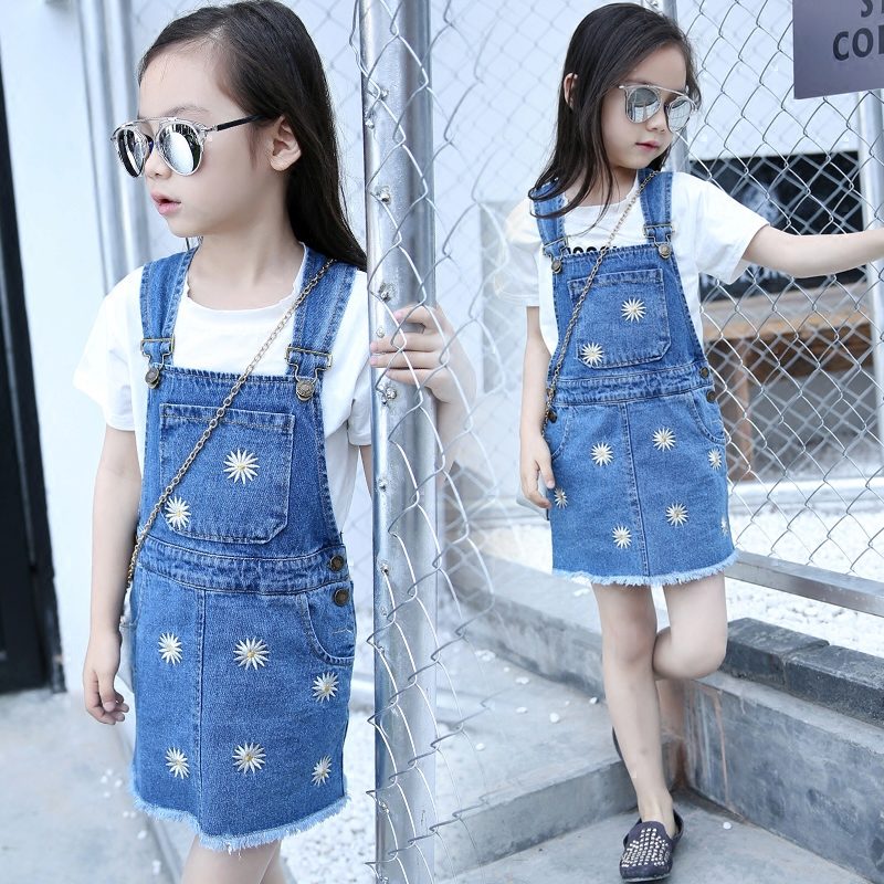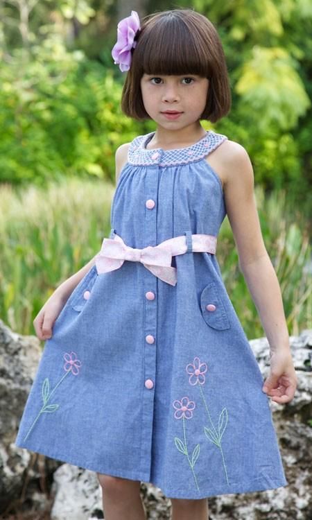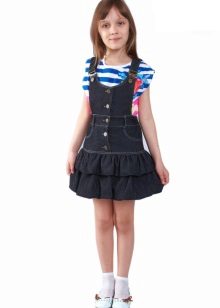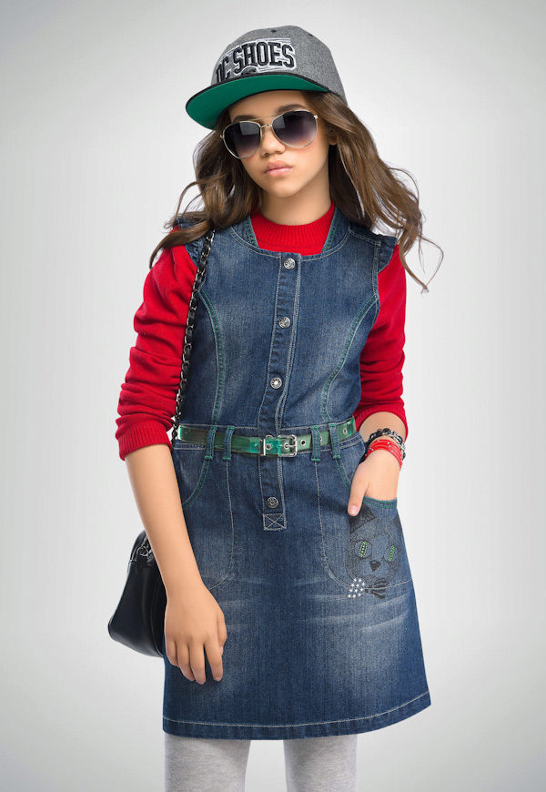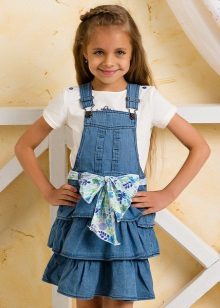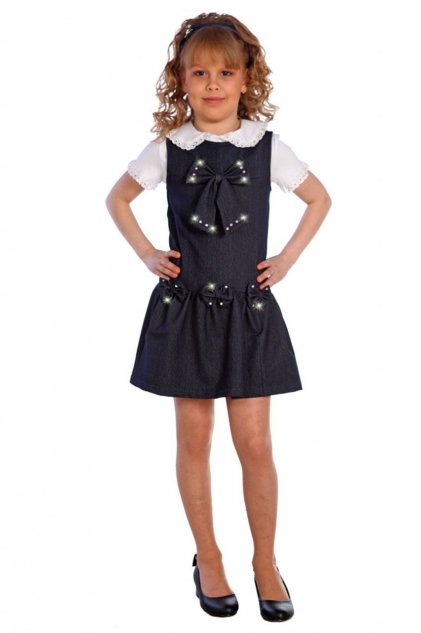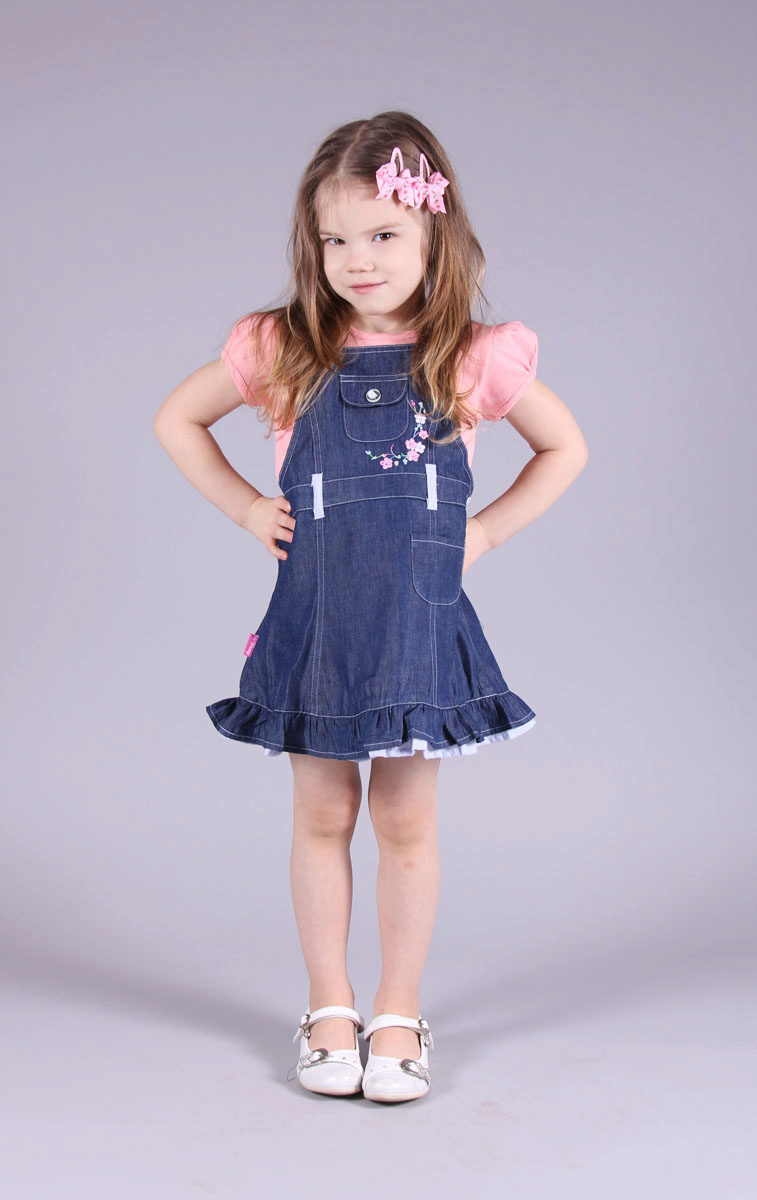 Denim sundress is perfect for walking and playing in the fresh air. In a jeans sundress, you can go to school, to visit, to a festive event. Denim sundress goes well with other clothes. He always looks fashionable, stylish and relevant.