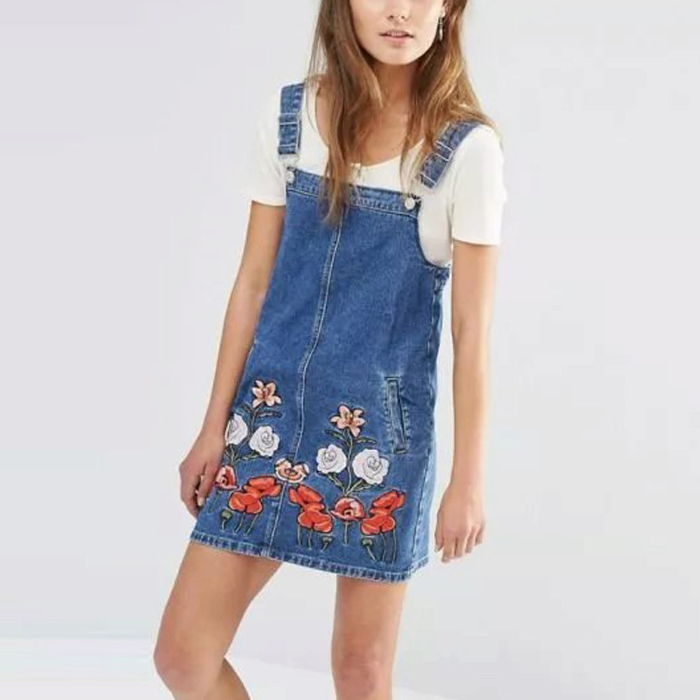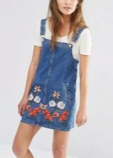 - Summer denim sundress should be as easy and convenient. He should not hold down and hamper movements.Bright, original applications, beautiful embroidery, inserts from other fabrics, etc. can be used as decorative elements for decorating summer models.