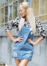One of the main advantages of sarafans jeans - the ability to easily combine them with other things. Actual practicality of such a sundress and a variety of patterns allows girls to create a variety of images.