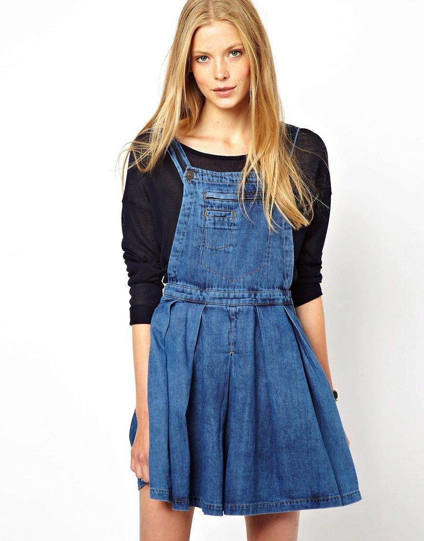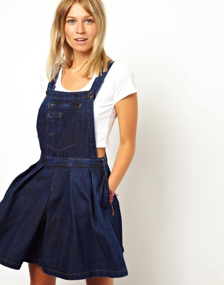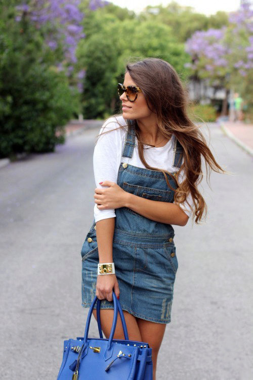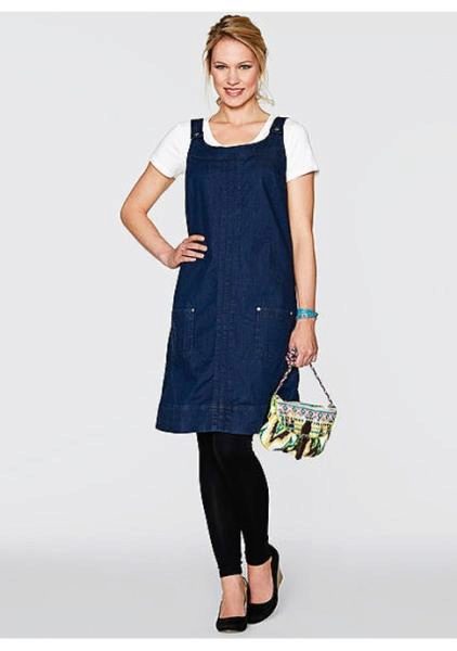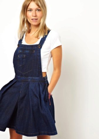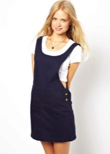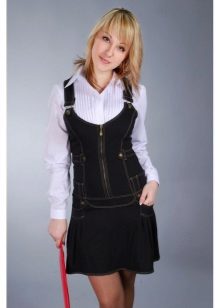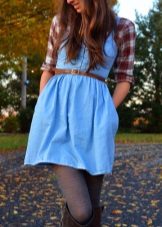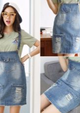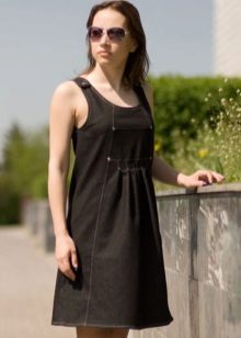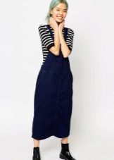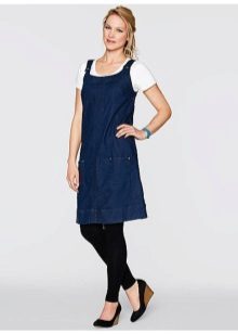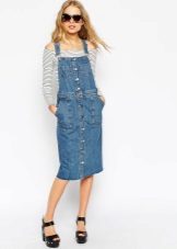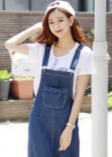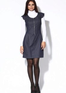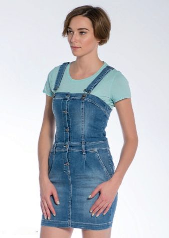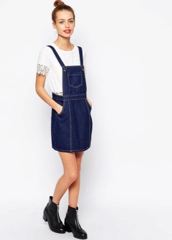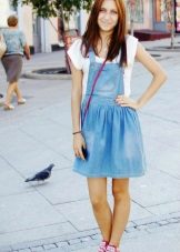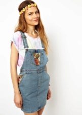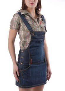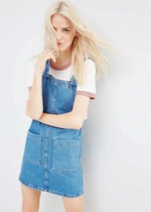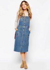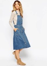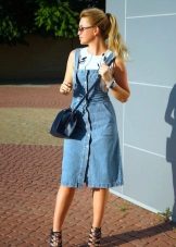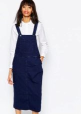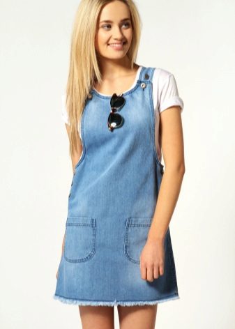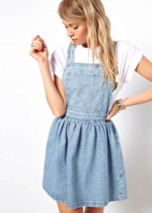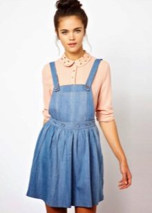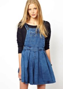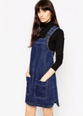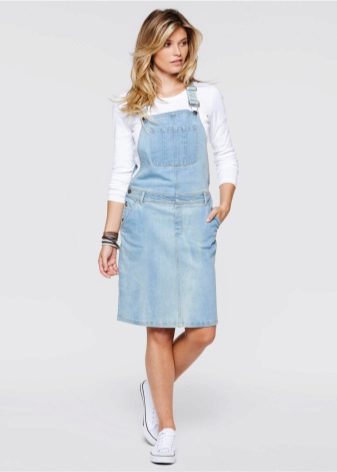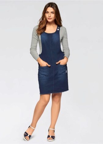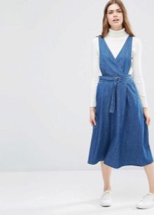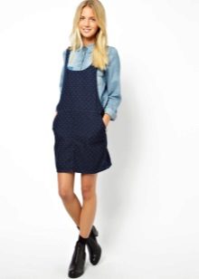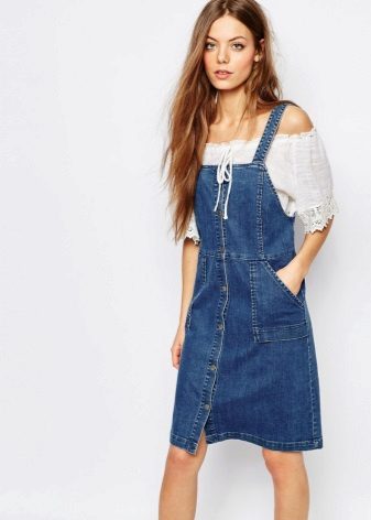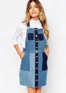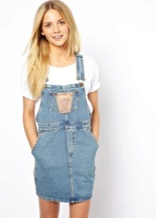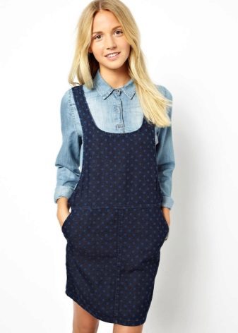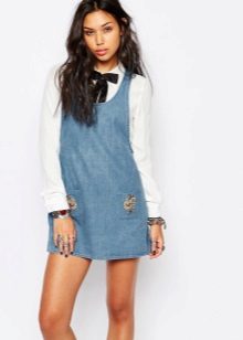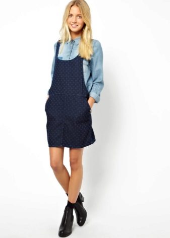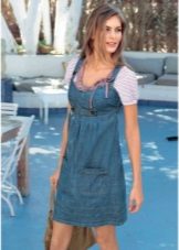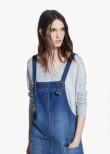 If a denim sundress has a midi or maxi length, the denim top should be shortened, mini sundresses can also be combined with jeans cloaks. It will look good layering - on the sundress you can wear a shirt and a vest on top.