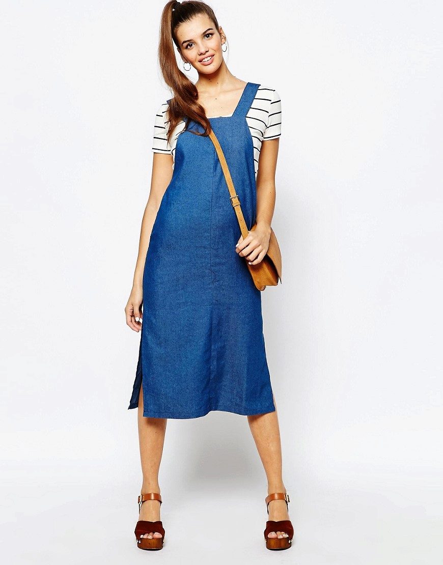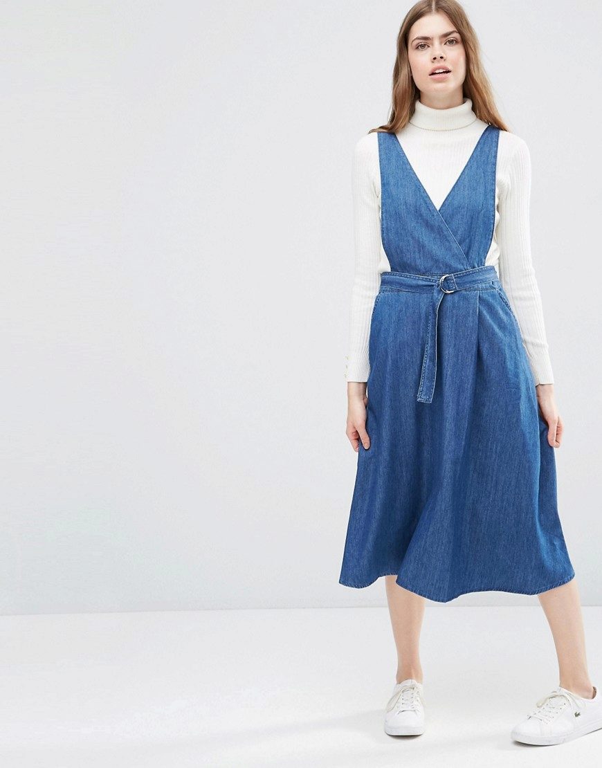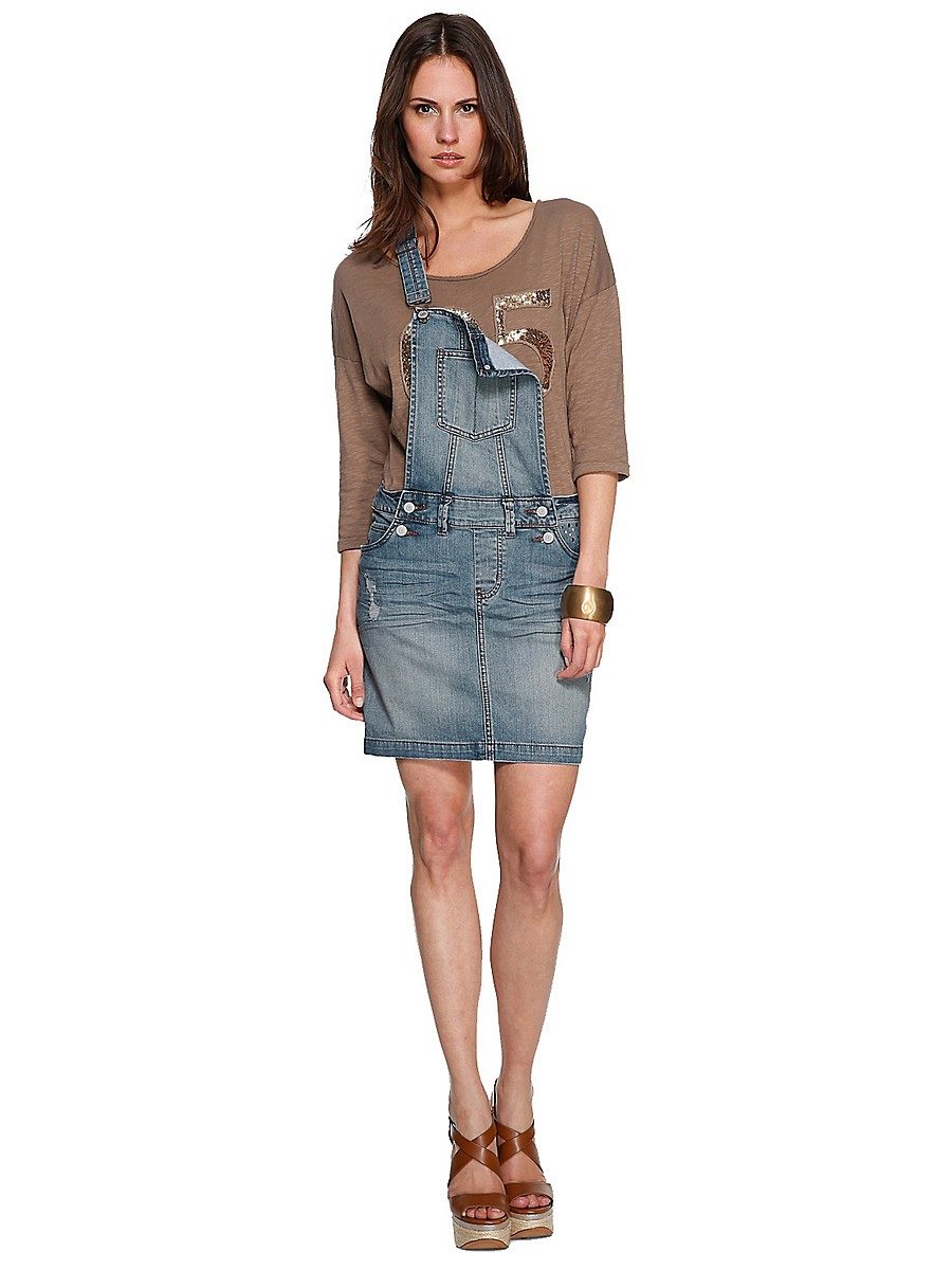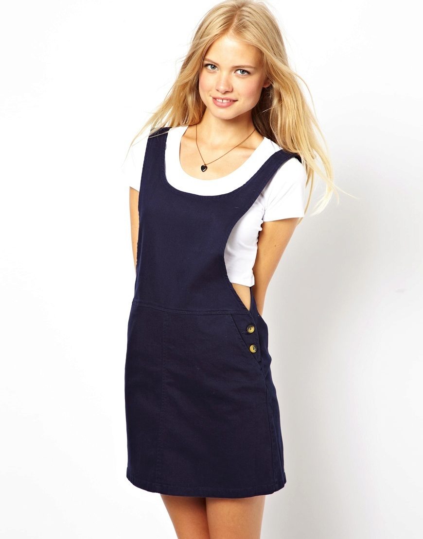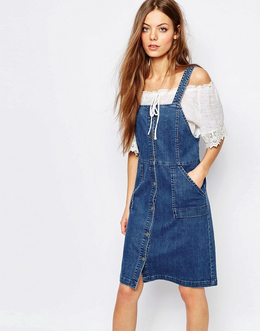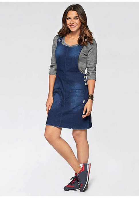 If a denim sundress has a midi or maxi length, the denim top should be shortened, mini sundresses can also be combined with jeans cloaks. It will look good layering - on the sundress you can wear a shirt and a vest on top.