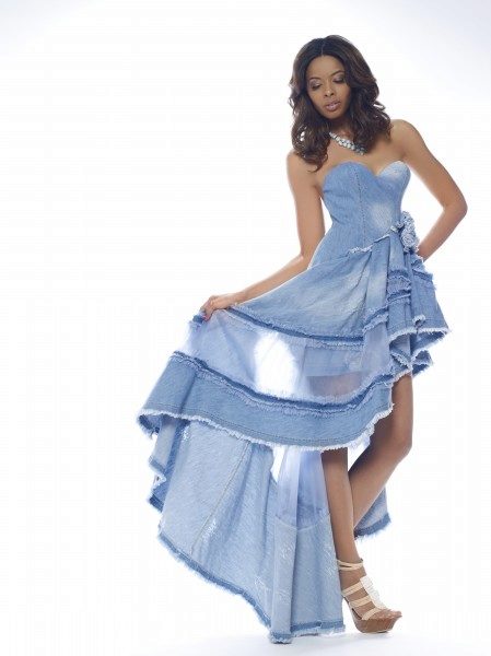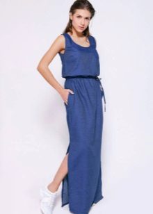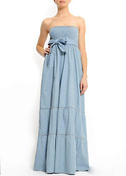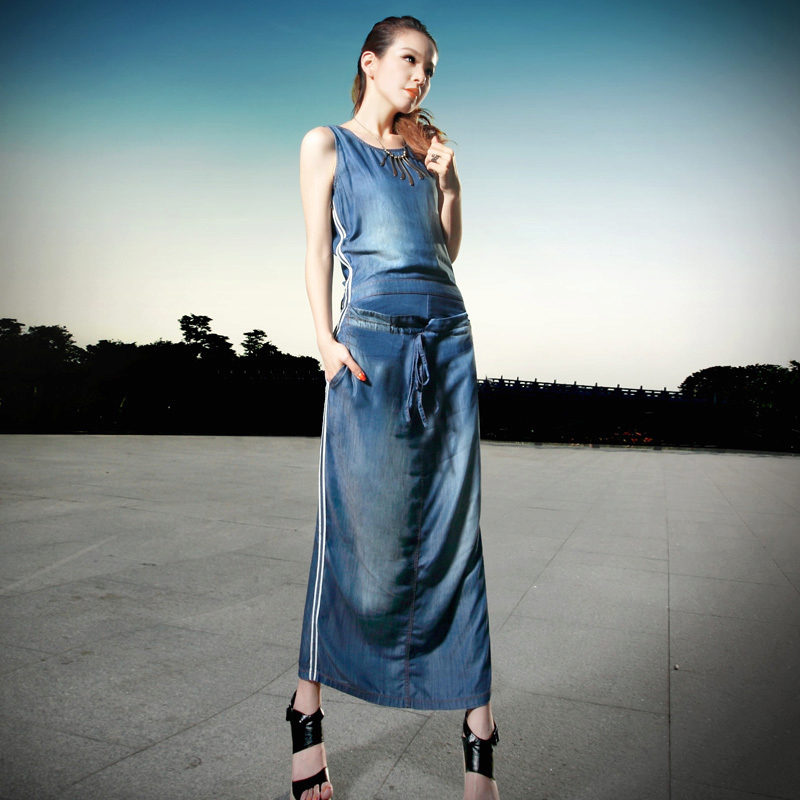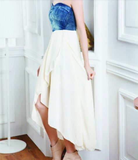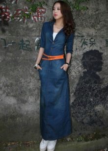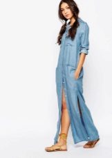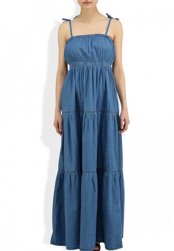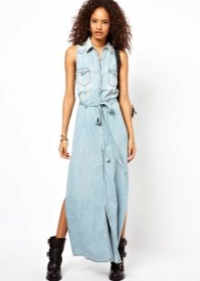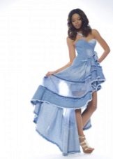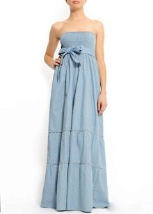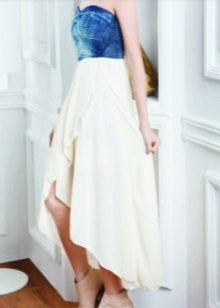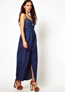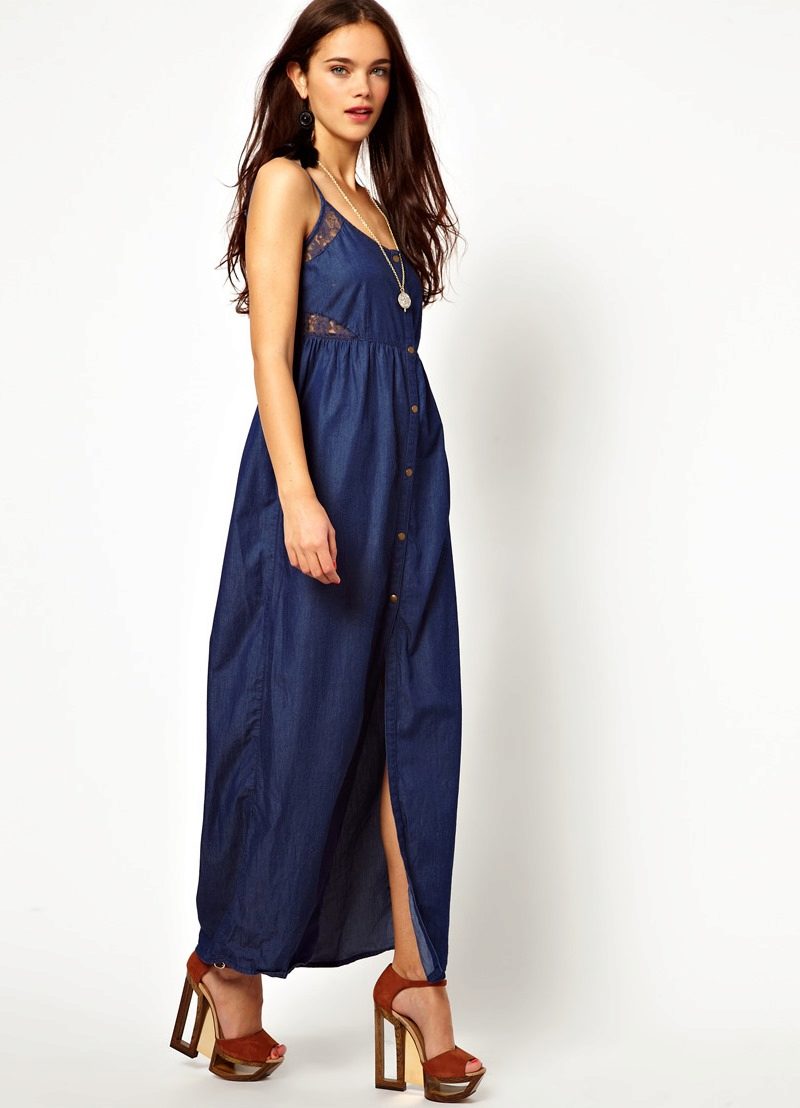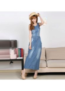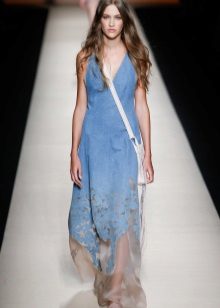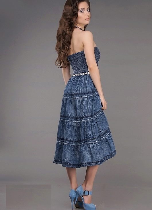 Today, at the peak of fashion models sundresses with a maxi skirt. It should be soft, sewn from thin denim, “hugging” the silhouette. It is interesting to look at models that reach to the knee in front, and going down to the shoe itself from behind — this option will look great at an evening event.