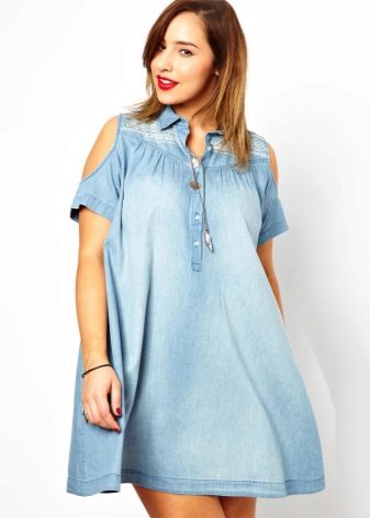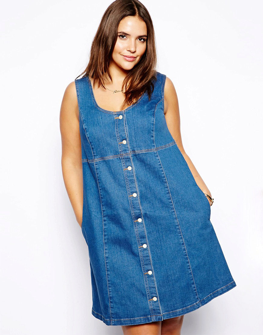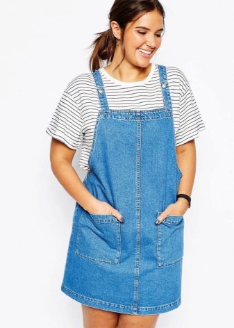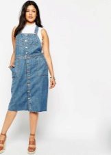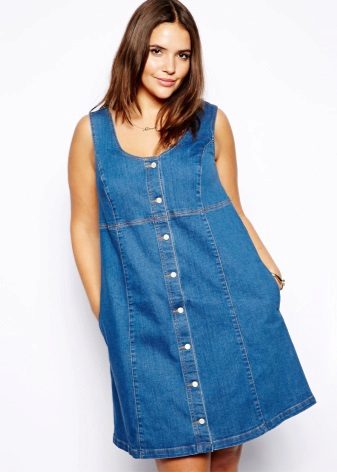 Separately it is necessary to say about the models of denim sundresses of large sizes. Denim is ideal for those who want to hide the imperfections of the figure: it is dense and keeps all problem areas in the right frames, while the patterns of denim sundresses are so diverse and allow many combinations.