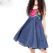 The denim is not hot, it does not restrain movement, and free cut does not interfere with activity. You can wear such sundresses with shoes on a flat sole, even sneakers are allowed!