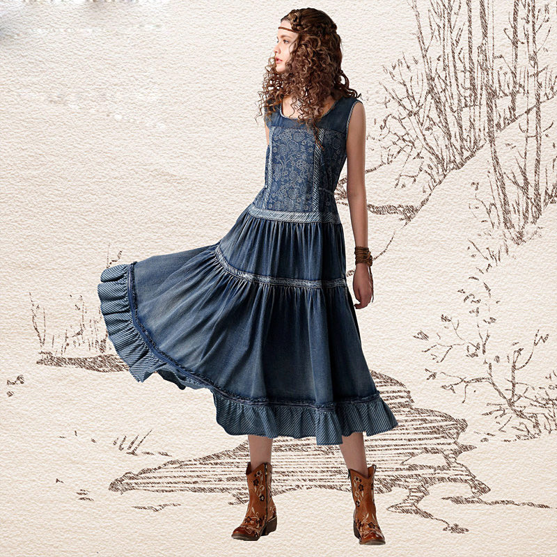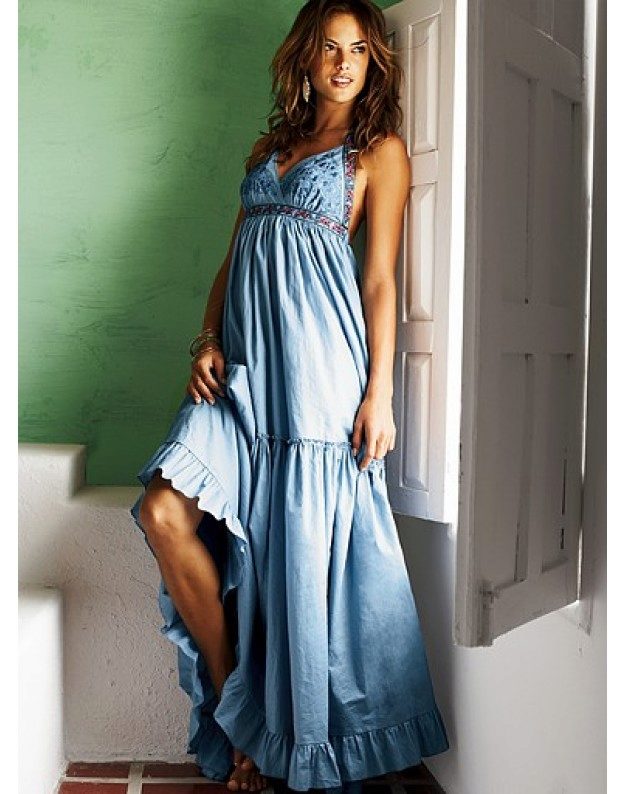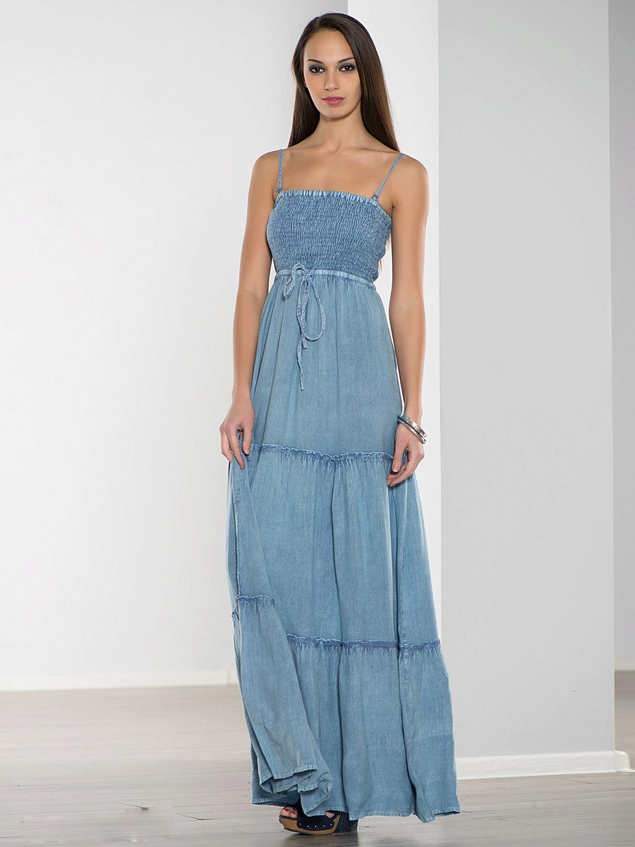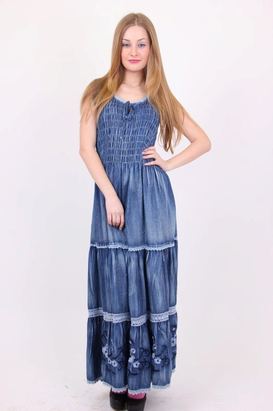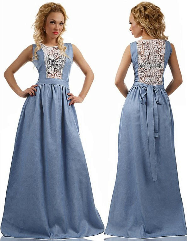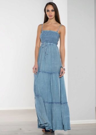 By the way, romantic models with a long skirt are not only an option for a celebration. Denim is a unique fabric that makes things even the most interesting cut suitable for every day. Sundresses with a skirt "to the floor" look feminine and easy, with them you can bring to life any image - from gentle and frivolous to the style of "country".