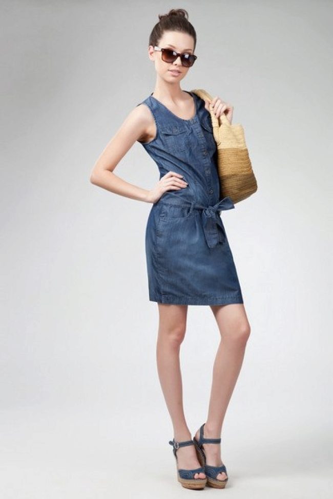 Another popular model is casual denim sundresses. In this outfit will be comfortable at a meeting with friends, going to the cinema or shopping, as well as just in the hectic weekdays.