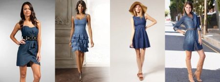 Casual sundresses from denim have a hundred styles - bustier or on the straps of different widths, with zippers or buttons, straight or A-shaped silhouette, with a skirt-sun or option "in the floor."