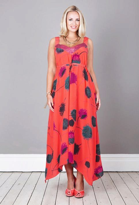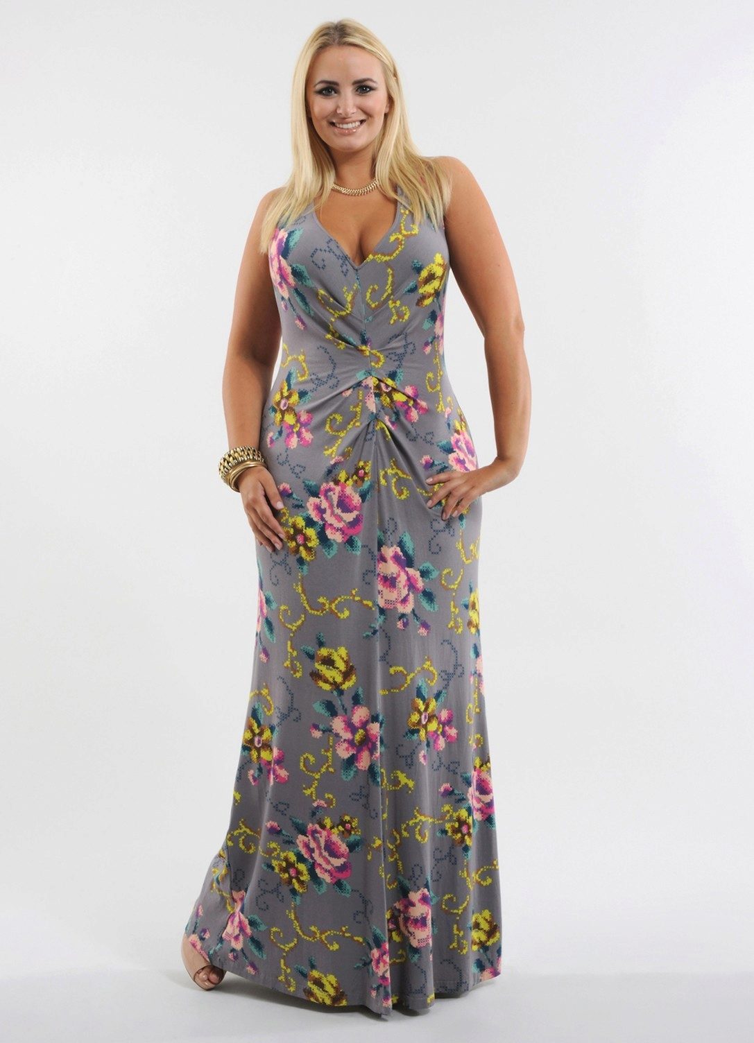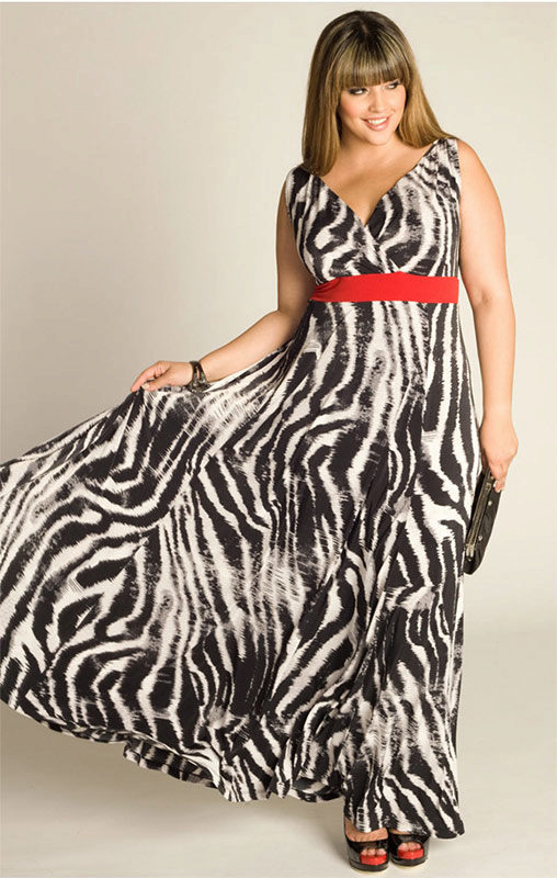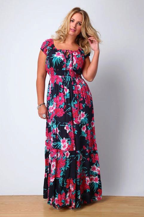 Sundresses with a large pattern became available not only thin, but also donuts. The secret lies in the blurry contours and the absence of bright contrasts that smooth out the fullness, blur the outlines and perfectly hide the flaws.