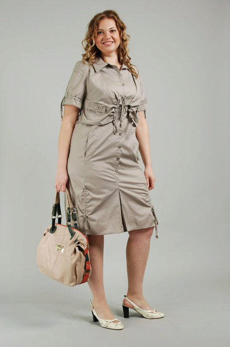 Sundress safari - A new trend in summer fashion for the full. In such models there are clear, strict lines, "through" fastener, which starts from the collar and continues to the hem.