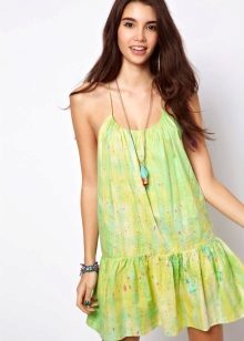 Sundresses on thin straps, resembling a short nightdress - a real hit of the season. They should sit freely, in any case not fitting the figure. On the contrary, the actual style of baby dollars and sundresses with a full skirt. On the fragile girls will look good models with pleating.