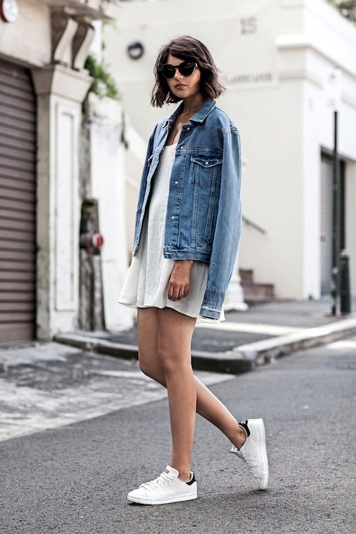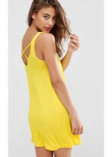 - Perfect everyday summer look! A short bright yellow sundress in combination with mint-colored sneakers looks flirty, and at the same time very cute. In comfortable shoes, your legs will not get tired even after long walks. A beautiful image for meeting friends, shopping and even dating.