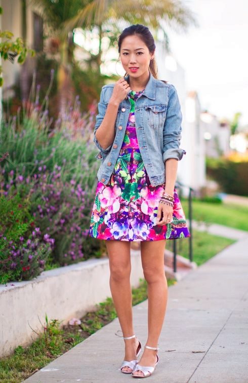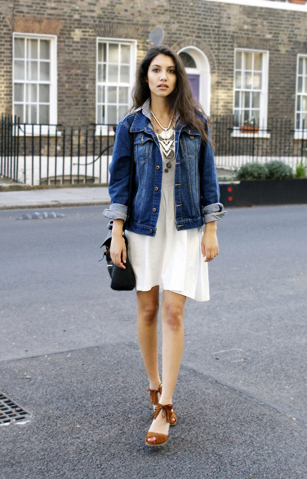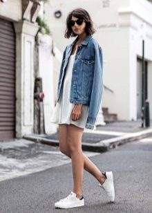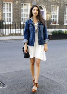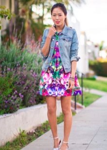In the evening, you can add the image of a denim jacket. With light sundresses will look good jacket jacket of light denim and vice versa.