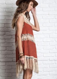Boho-style dress will look great with a suede shirt or jacket. To such an image you need to choose the appropriate shoes and accessories. Natural natural colors, natural stone trim and fringe are welcome.