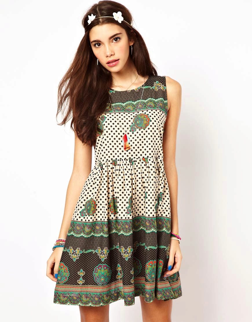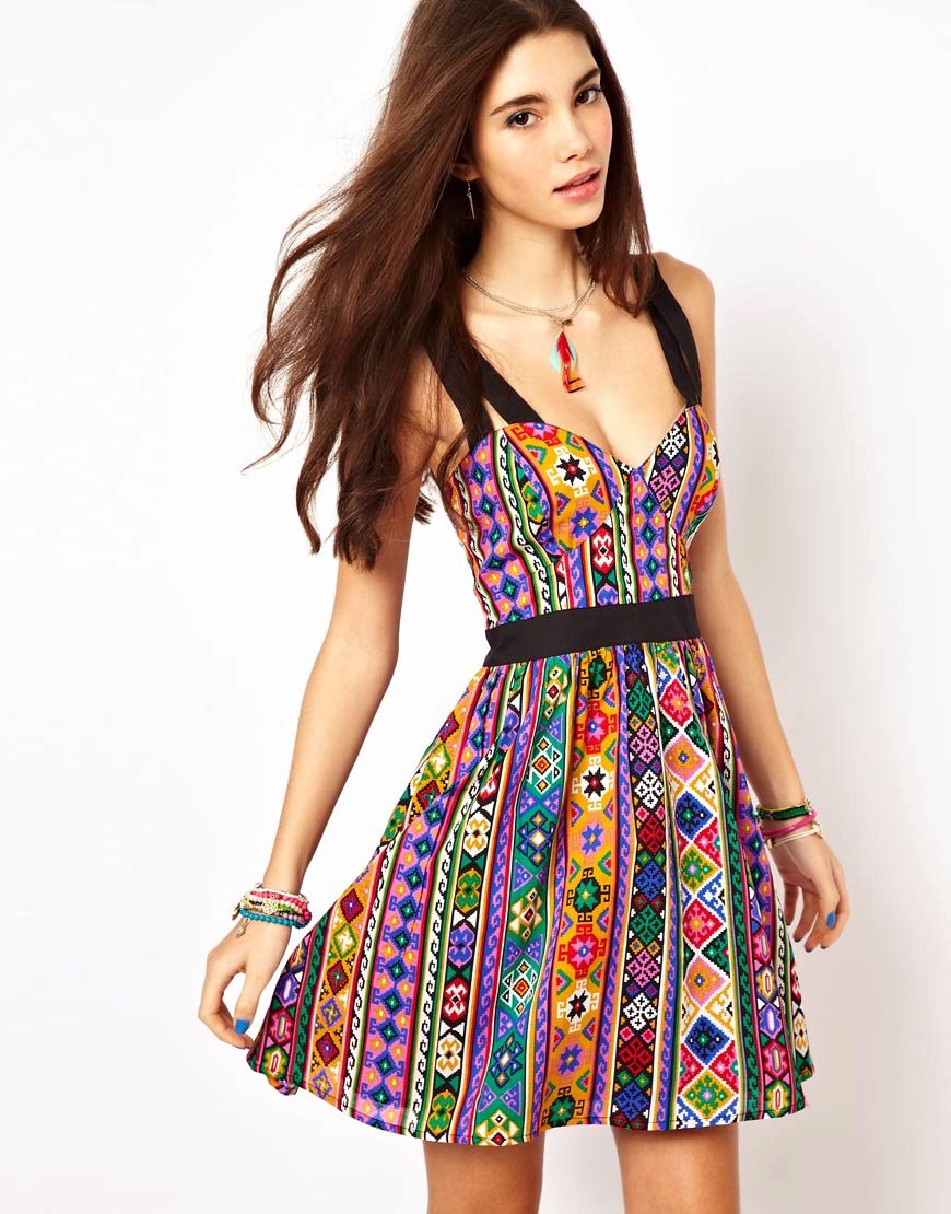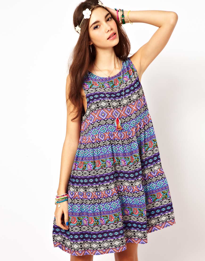 Without a doubt, ethnic patterns are in the lead. They can be found not only in sundresses, but also on blouses, summer cardigans, swimsuits and other clothes. But it is bright sundresses in the boho style that look the most attractive.
