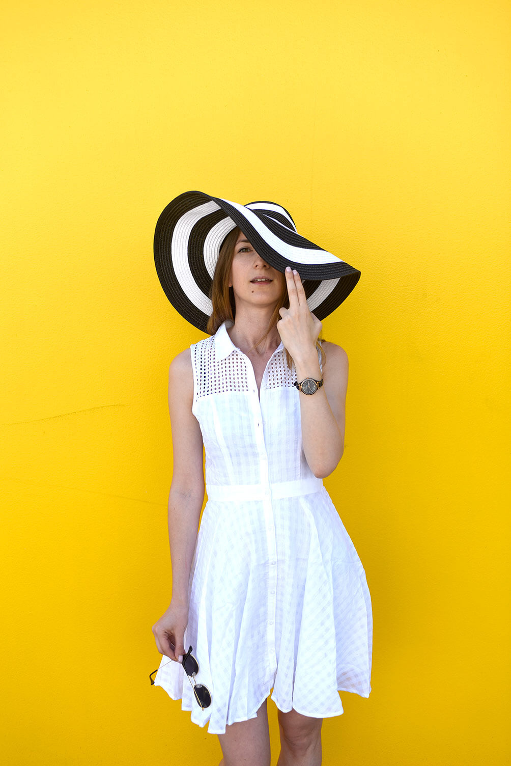 An excellent solution for every day would be sandals with a flat sole, a small handbag or clutch and a straw hat. It will protect you from the scorching sun and will be a bright addition to the image.