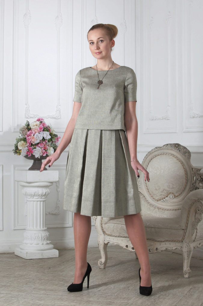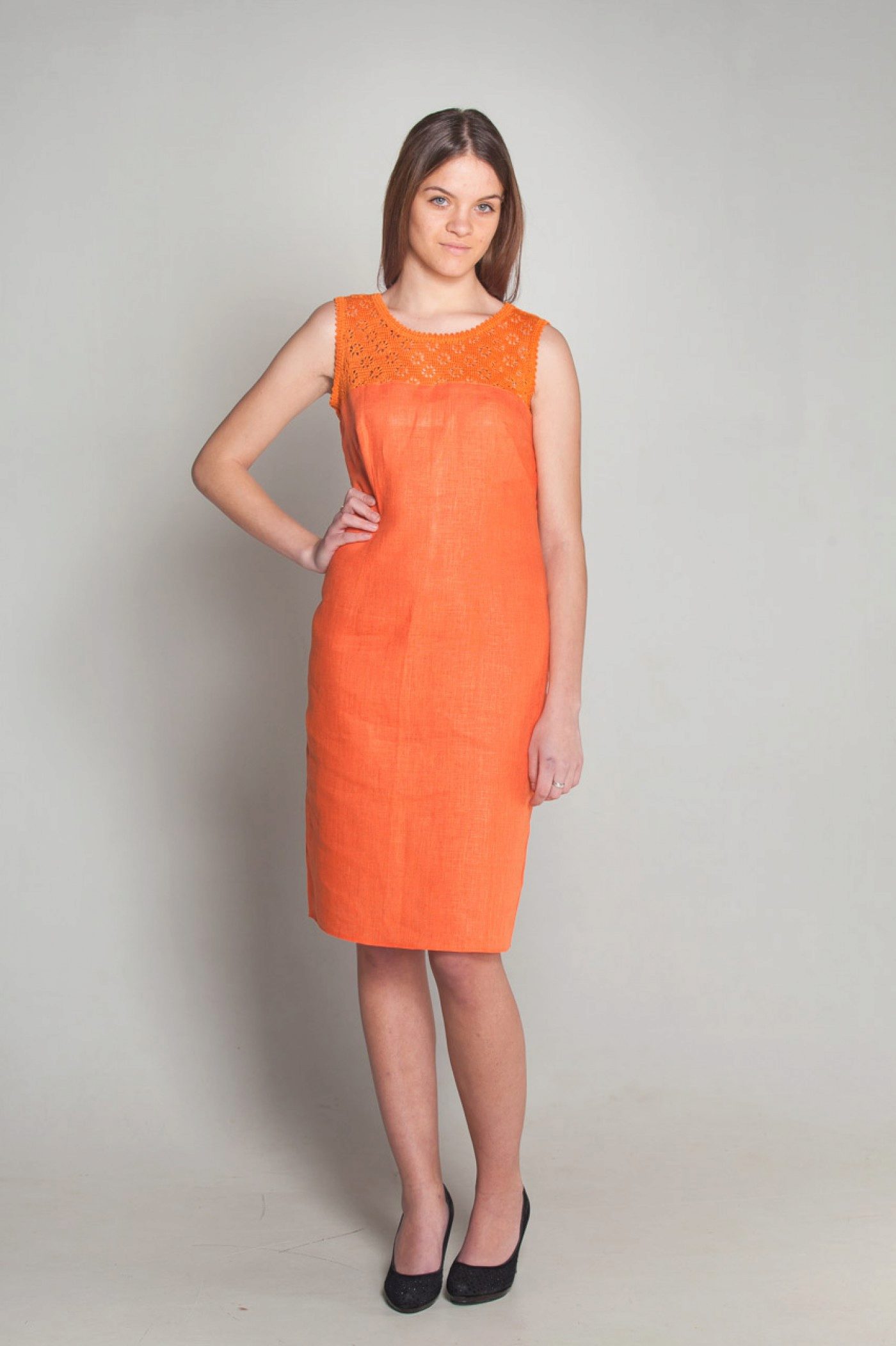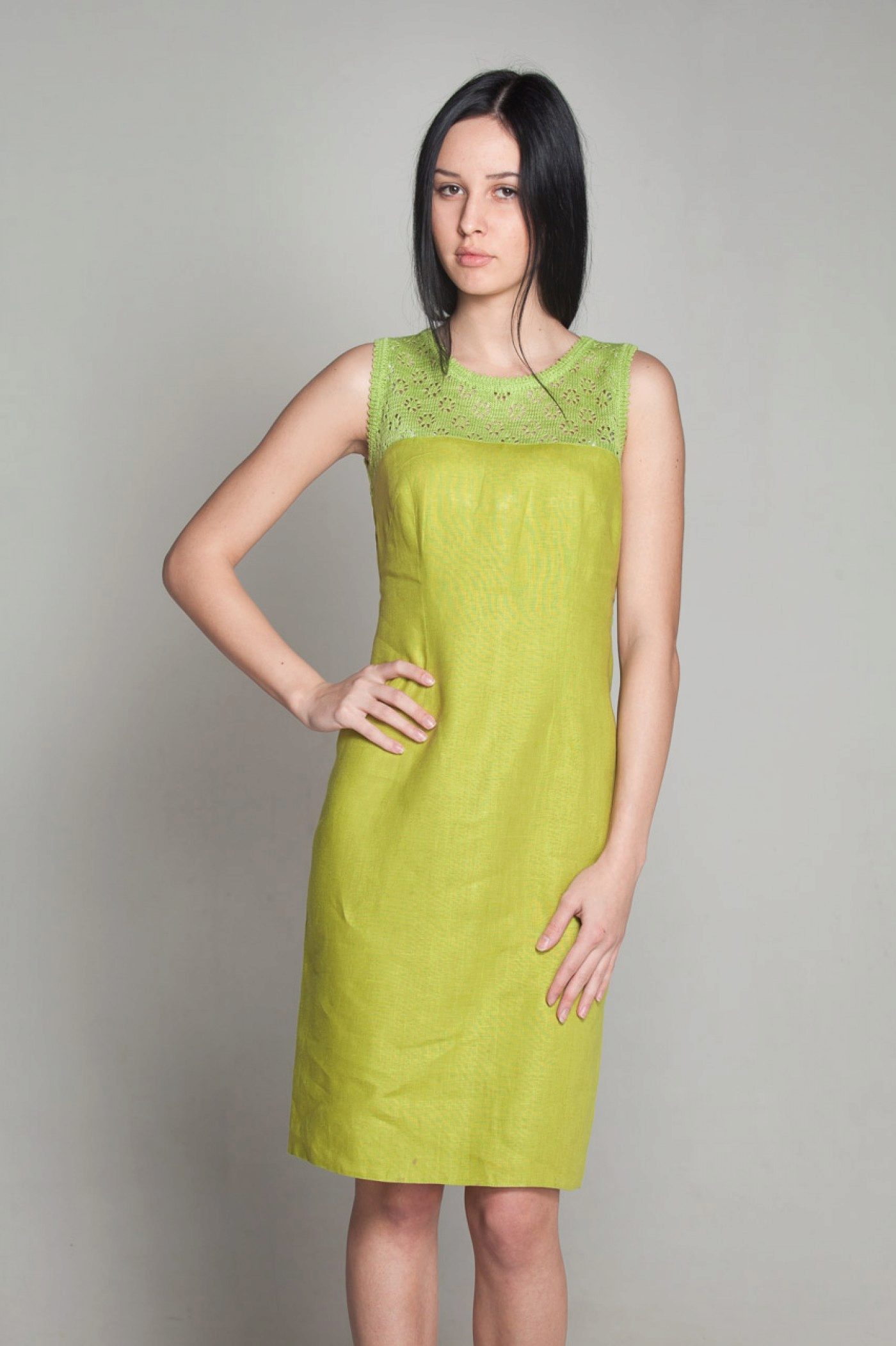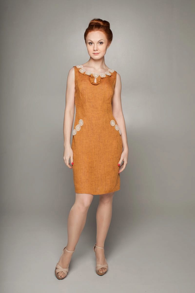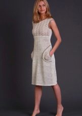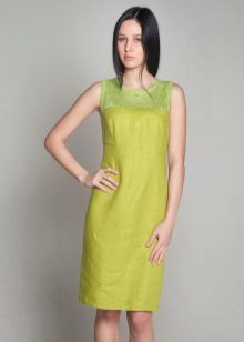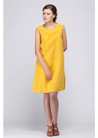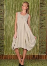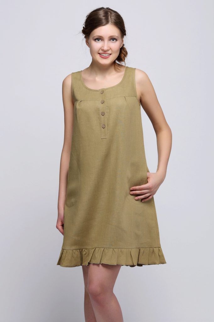 In the office business women prefer to wear a linen sundress up to the knee or a little higher, as a rule, straight cut or A-shaped silhouette. The business sundress from flax is sustained in reserved color scale. It can be supplemented with a belt, belt.