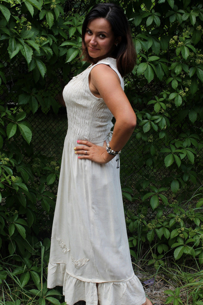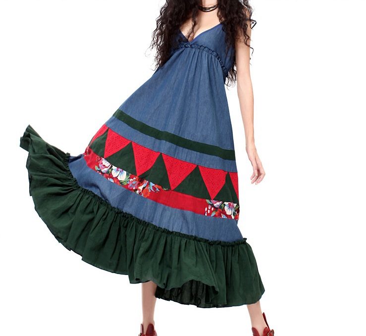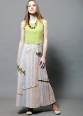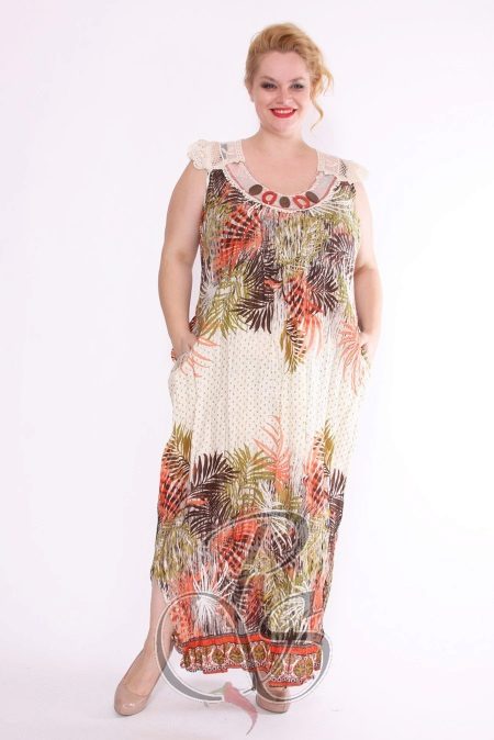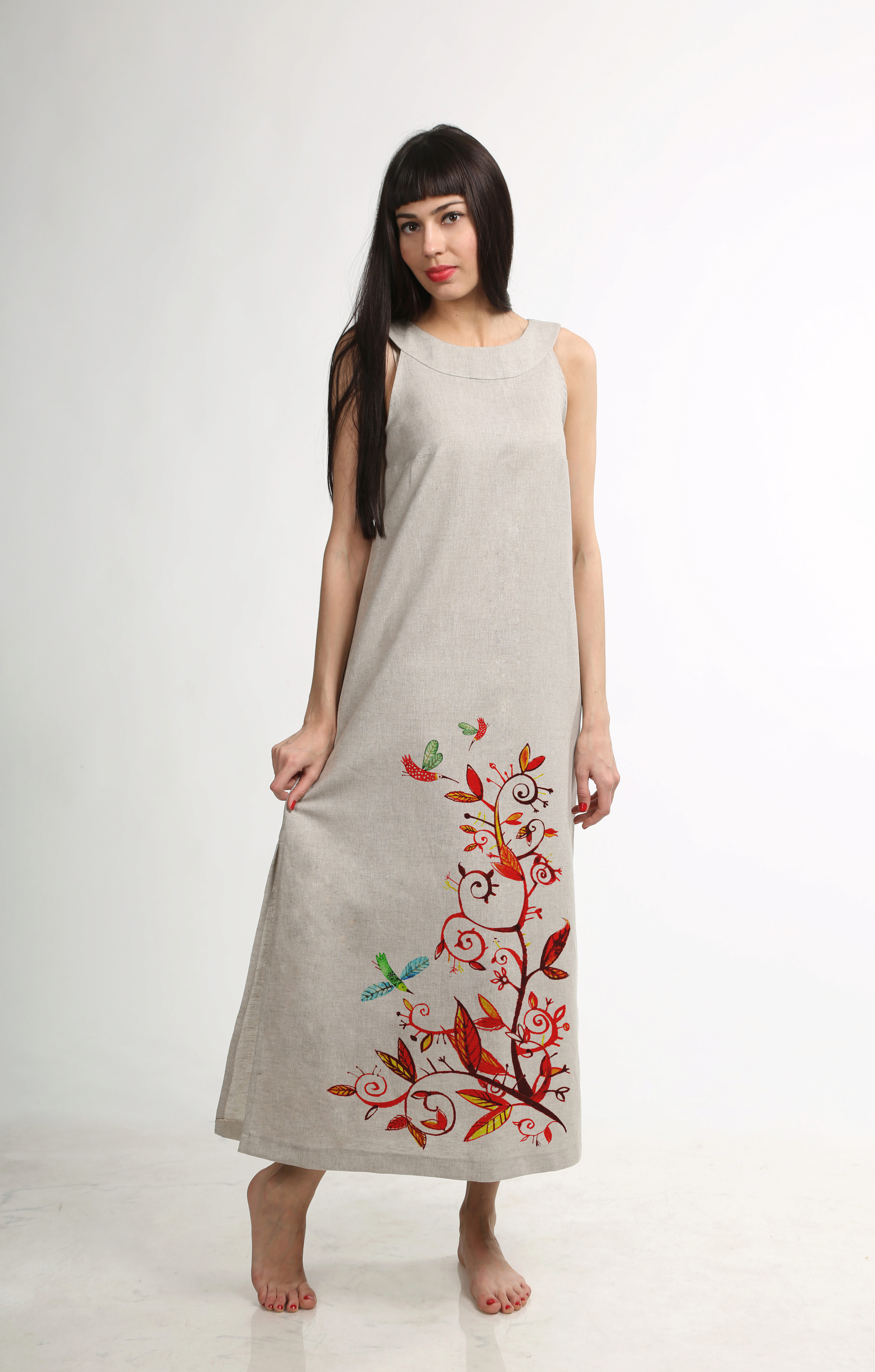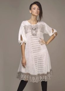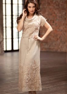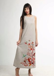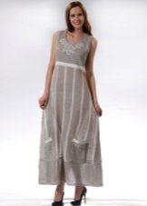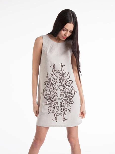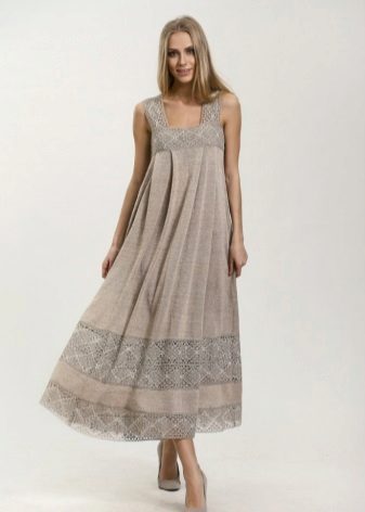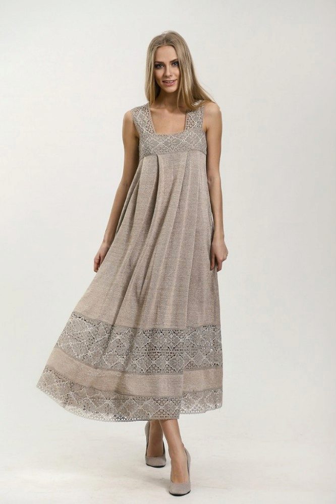 The style with ethnics motifs among flax sundresses is very popular - the effect is enhanced by lace inserts in the characteristic ethnic style, embroidery, cut details.