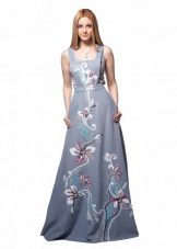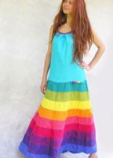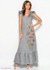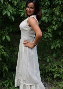 - Long sundresses in the floor have become popular in several recent fashionable seasons. Combined with lace trim, inlays, frills and ruffles, decorated with embroidery, they became a real hit for all ages of fashionistas. Among this model there are stylized antique sundresses resembling an ancient Russian costume.