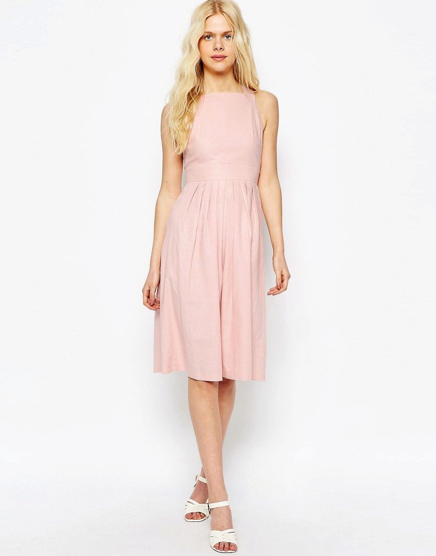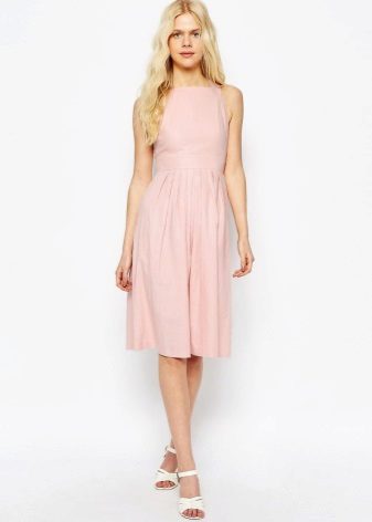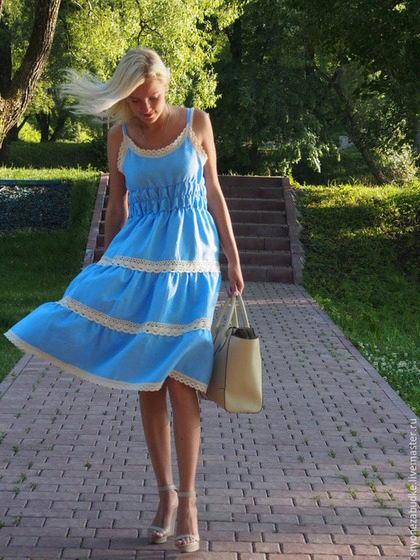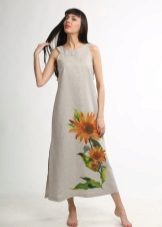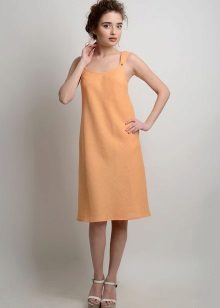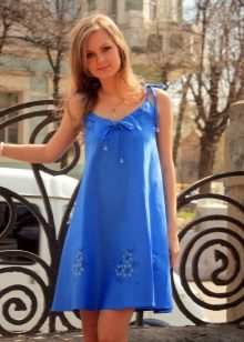 The length of a linen sundress is not limited by the fantasy of stylists and the preferences of fashionistas. The traditional length to the knees at the sundress straight cut, above the knees at the minimalist models, and the length of the maxi in sundresses to the floor.