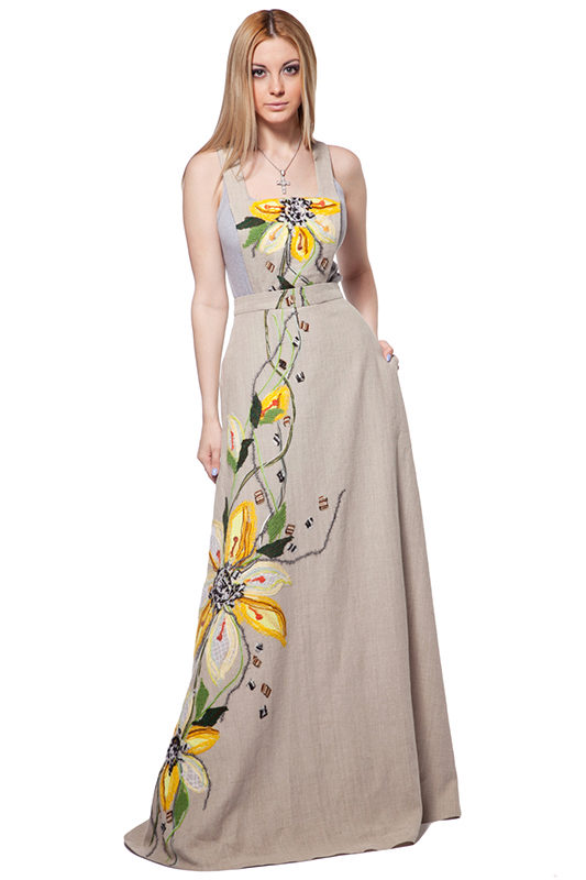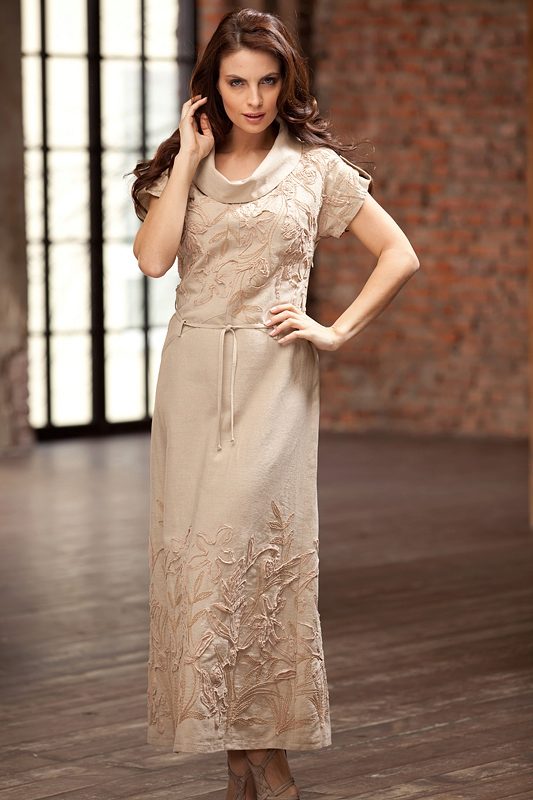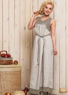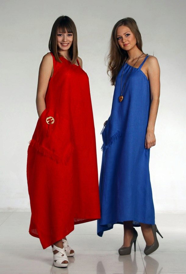 One of the leaders among manufacturers of linen products and clothes is the Russian company “Russian Flax”, which is engaged in eco-fashion. In its production, this factory uses only high quality natural fabrics. Linen sarafans of this factory differ advantageously from other manufacturers by their sophistication of images, high quality, interesting models, and the use of the latest production technologies.