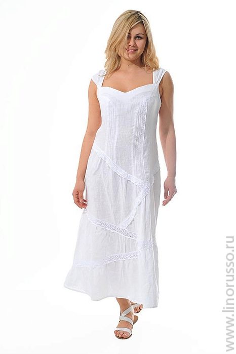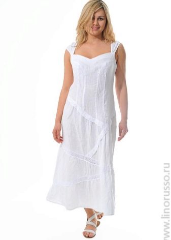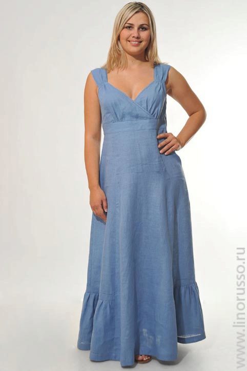 Linen sundress is ideal for obese women. The concept of a sundress allows you to feel free and at ease in it. In addition, the free cut allows you to hide all the flaws of the figure, visually gives slimness and pulls growth. In order to hide a big breast, a linen wrap dress will be perfect. For women with overweight and obese figure an excellent model would be a model with a high waist or a free-fitting sundress with a straight cut.