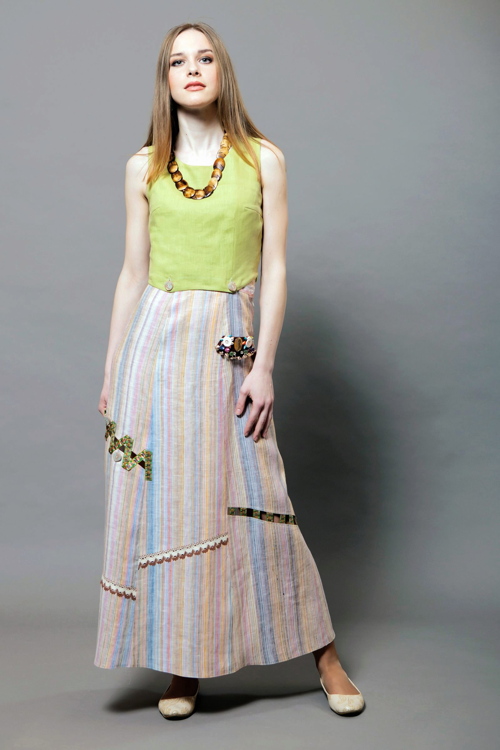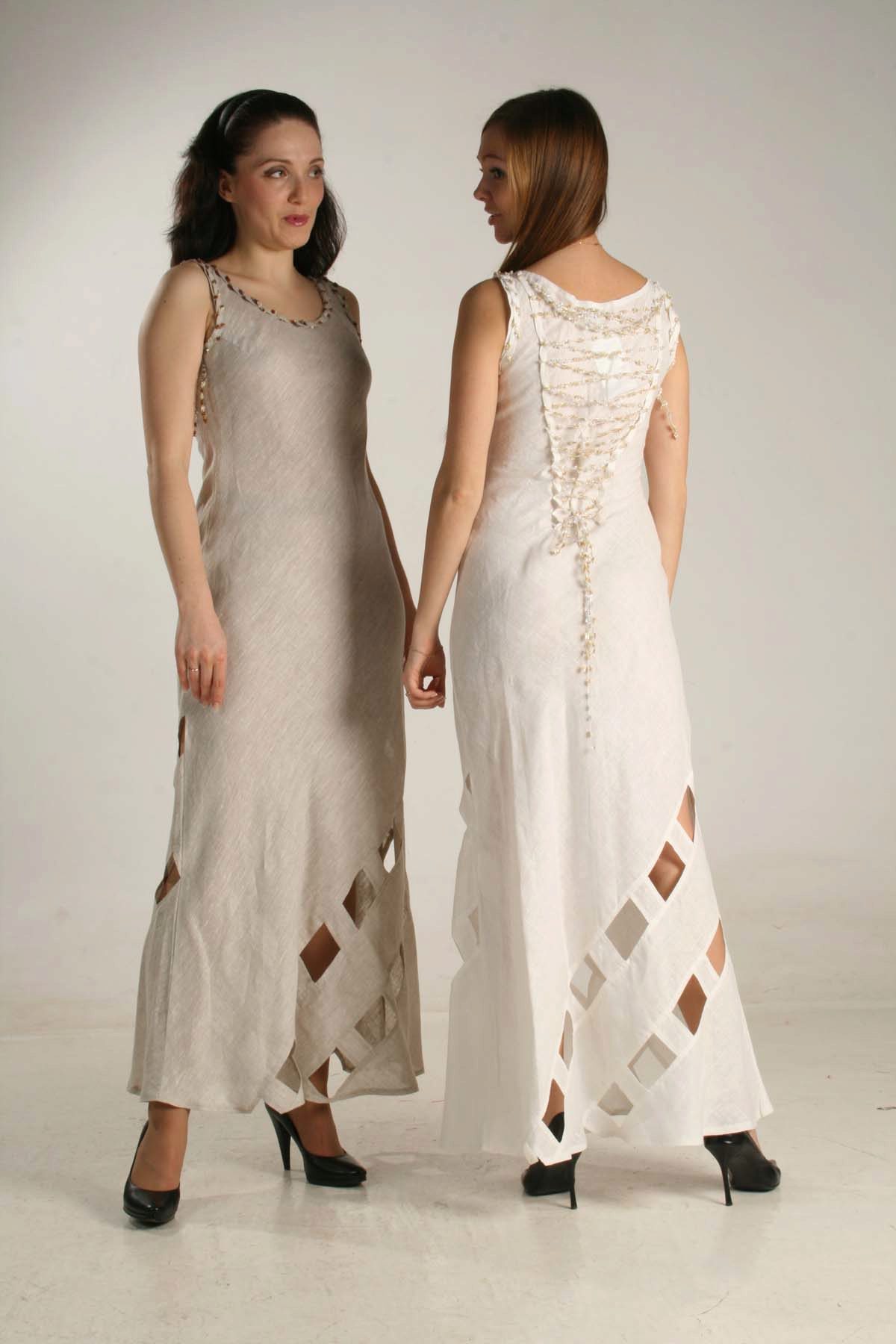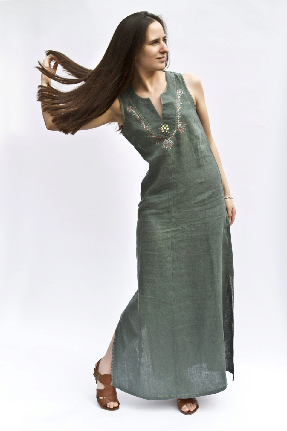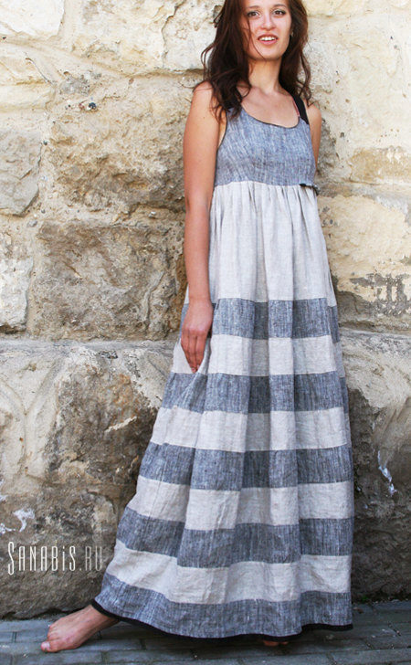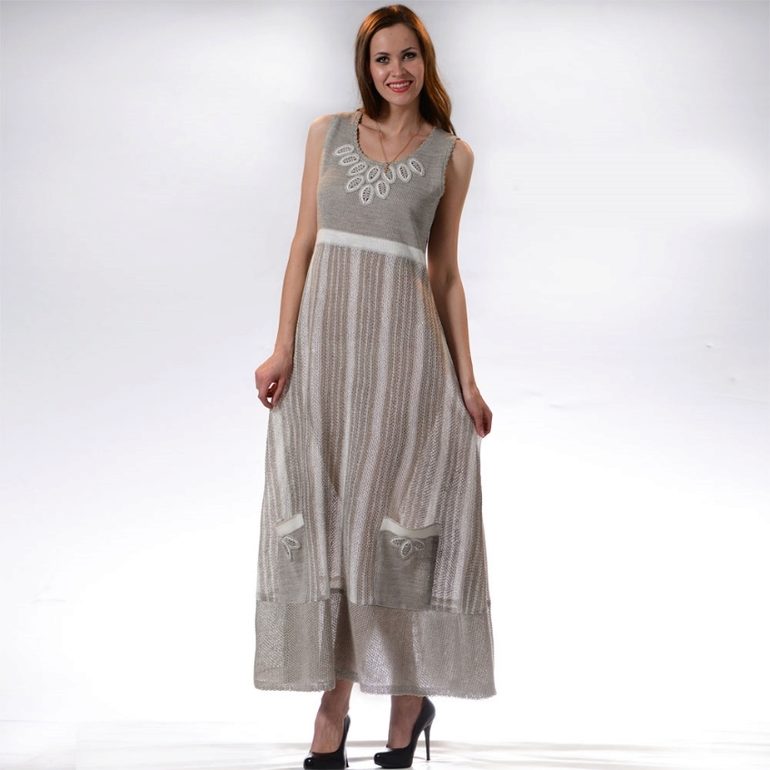 In hot weather, it is better to give preference to a flaxen sundress of short length, which will allow you to leave most of your body open. You can wear a flax maxi dress for a party or a walk, with accessories and appropriate footwear.