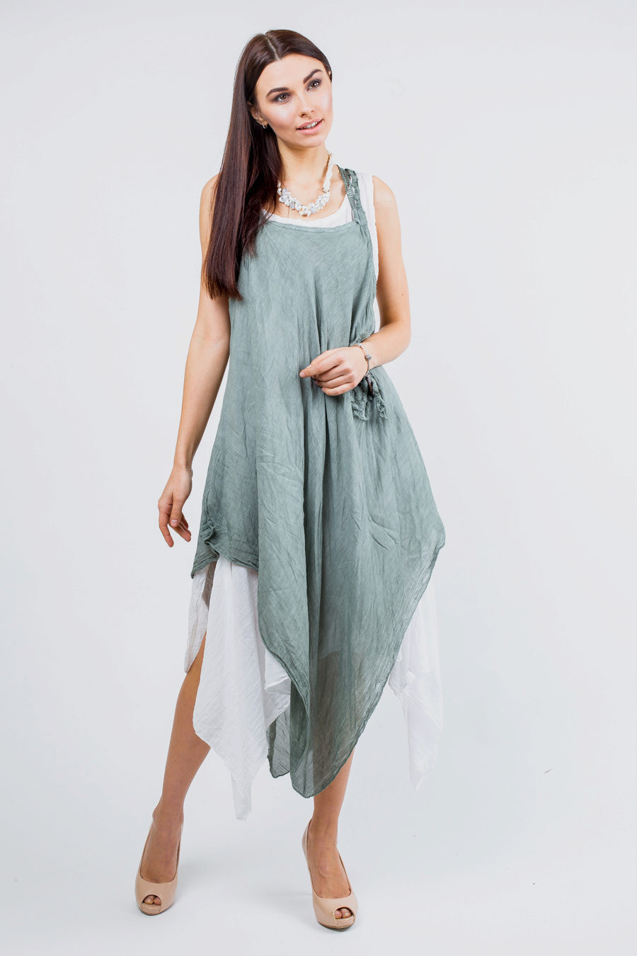 The color variations of linen sundresses pleases with variety. If you are a fan of natural shades or pastel colors, you will still find many shades of such colors in the assortment of the leading manufacturers of linen sundresses: white, sand, khaki, brown, blue, dark blue, gray, peach, etc.