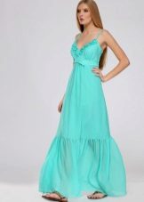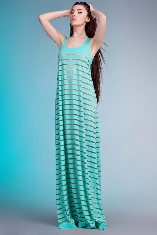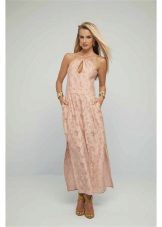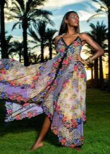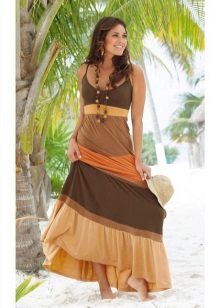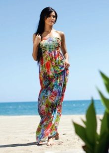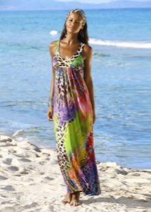 Maxi sundresses will also look great over a swimsuit. Due to the length of the skirt, these models can be more frivolous on the material or cut - for example, translucent, have a pronounced neckline or open back. Such models are well suited and plump girls, as sewn wide and perfectly hide the flaws of the silhouette.