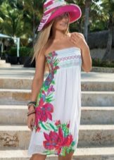 One of the most convenient models is a strapless sundress band. It will be a wonderful option for girls with a beautiful bust and slender shoulders. In addition, in such a model on the skin will not remain strips when tanning, which is especially important under the hot sun - even five minutes will be enough to tan "under the straps."