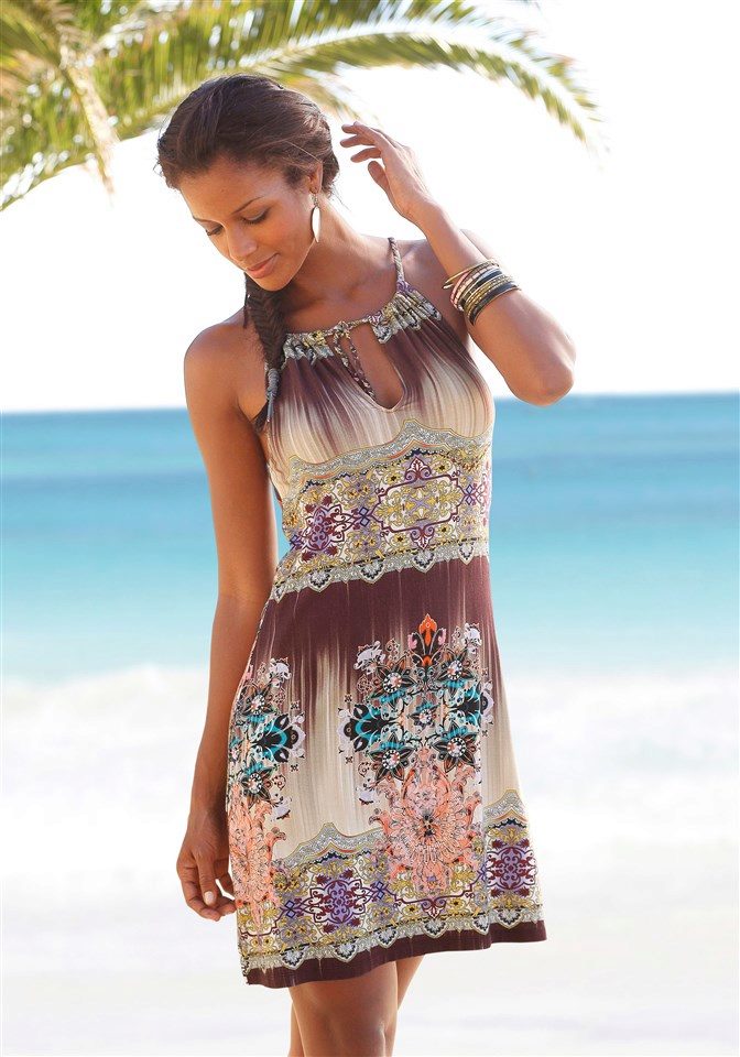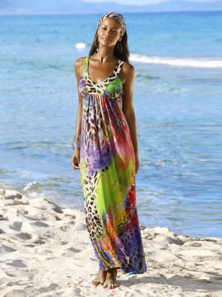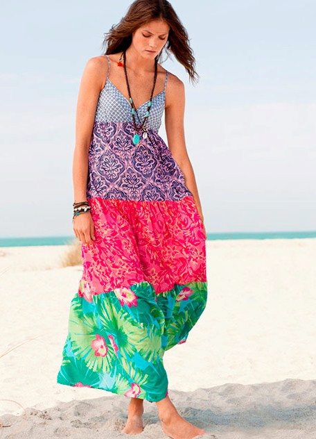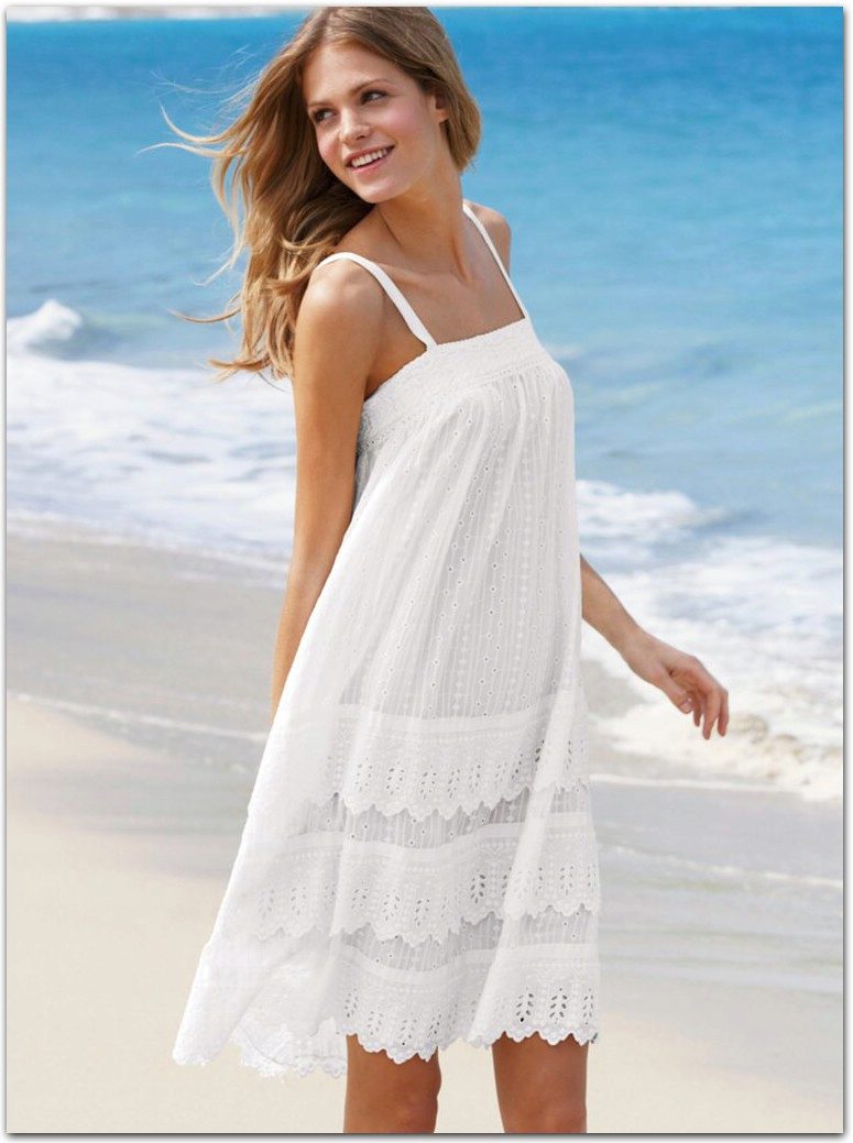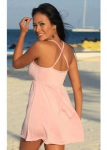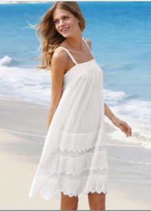 Beachwear is designed to hide a swimsuit before coming to the pond, as well as to enable the girl to look decent at a beach bar or in a gift shop. The perfect option for this will be a dress. Its advantages are obvious: the sundress is easy to wear and remove, it does not squeeze the skin, especially sensitive after the sun.