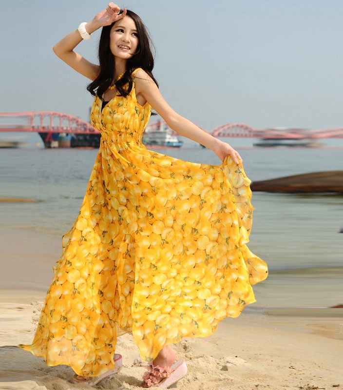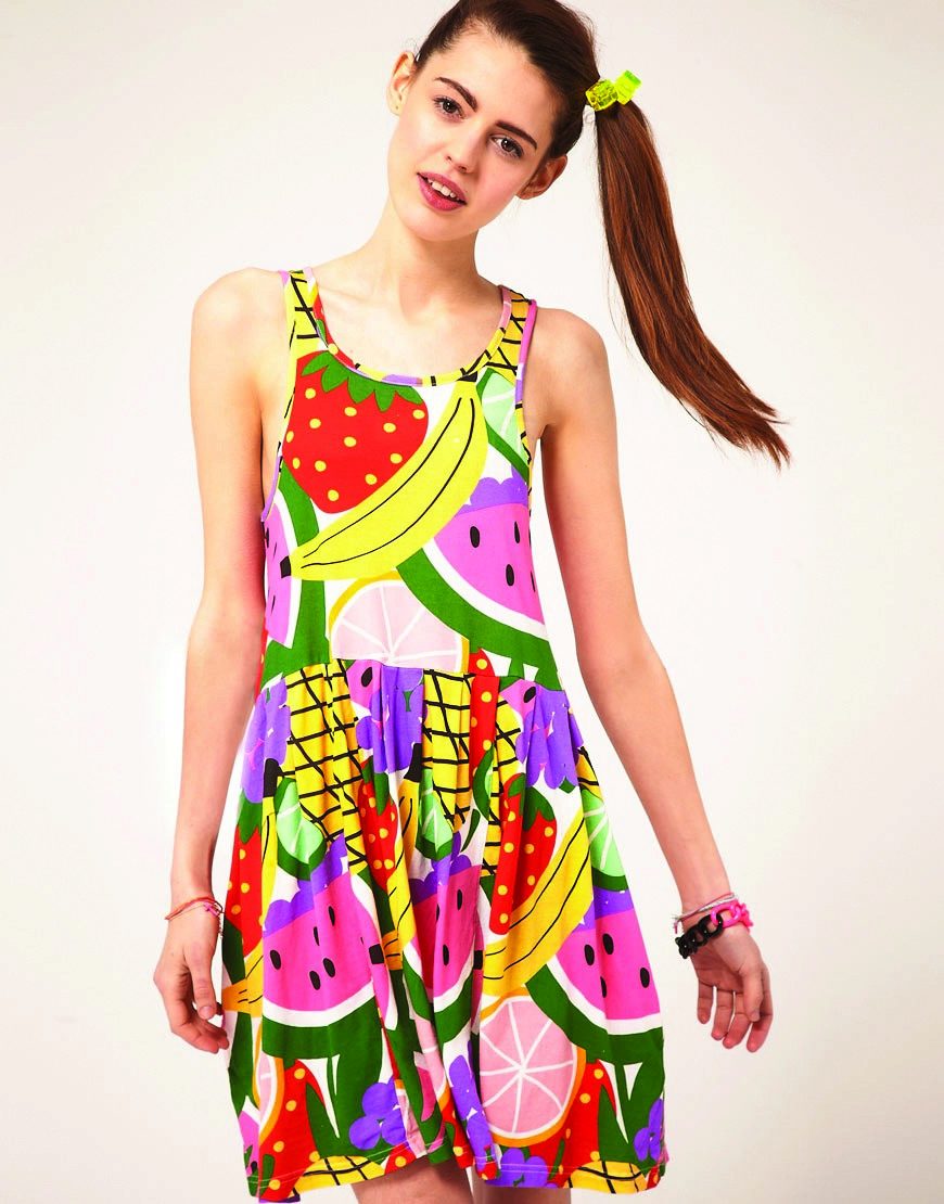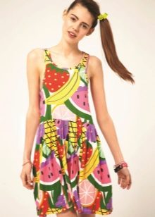 Beach dress with a fruit pattern is a novelty of this season. The image of fruit on a bright monophonic background will be an excellent option for bold fashionistas.Such a juicy image is hard not to notice! Marine motifs also do not go out of fashion for a decade. Sundresses blue and blue in combination with white and red accentuate tanned skin and take you to the sea before you leave the room.