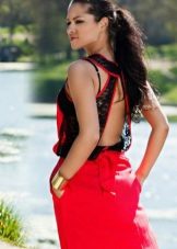 Models with low waist dark tones will mask the extra volume of the abdomen and hips. Also slim sundresses with lace on the side of the clothes. Lace inserts on the back and chest always give a stylish look.
