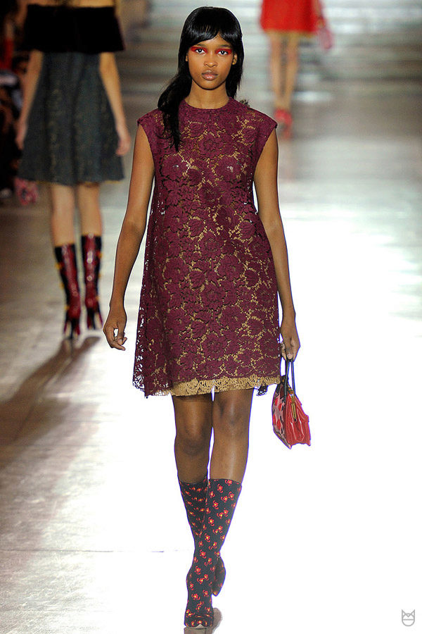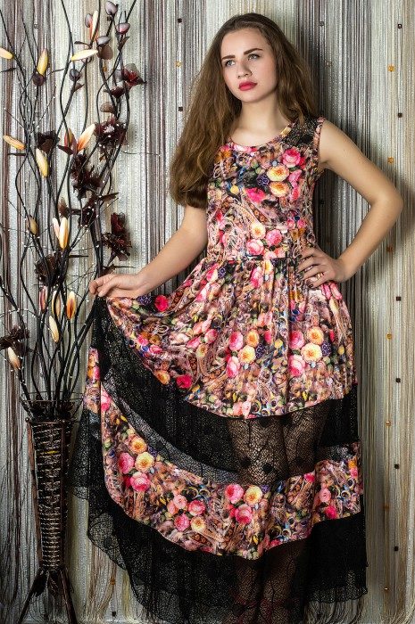 You can play on a combination of lace and print. For example, a polka-dot sundress with a black lace insert on the back will create a playful image. The model in a cage will be in harmony with the lace neckline.