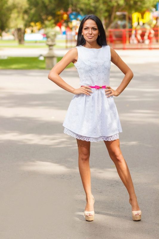 Such a thing as a sundress with lace, has its own characteristics. If you are not tall, then the lace trim will lengthen the silhouette. Lace belt will focus on the waist, visually make the figure more slender. Slender girls can safely wear a dress with frills and fluffy ruffles of lace.