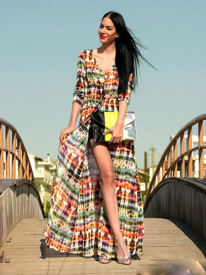 Smaller accessories are also welcome. It can be flat earrings, original watches, braided designer bracelets, ethnic or high-tech pendant on a long chain and rings. You should not take quantity, in the case of a sundress with a smell everything is decided by the quality of selection of each specific accessory.