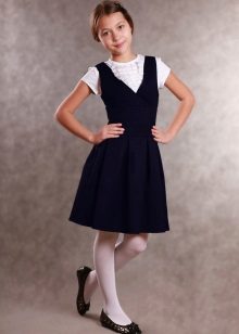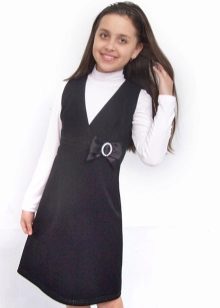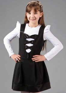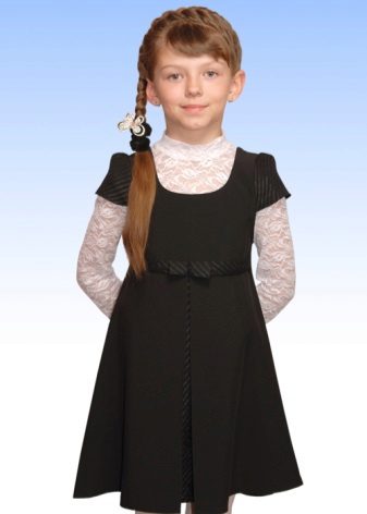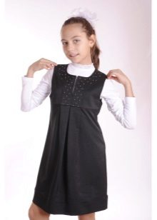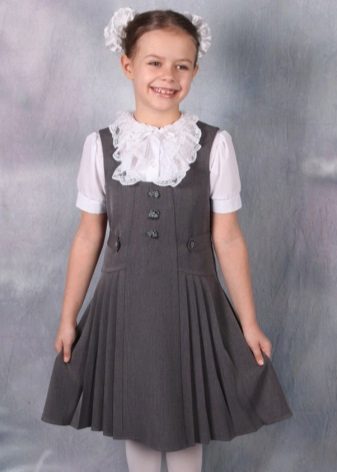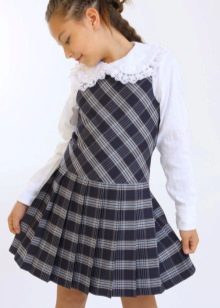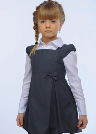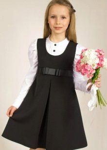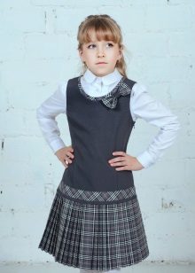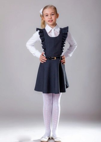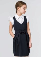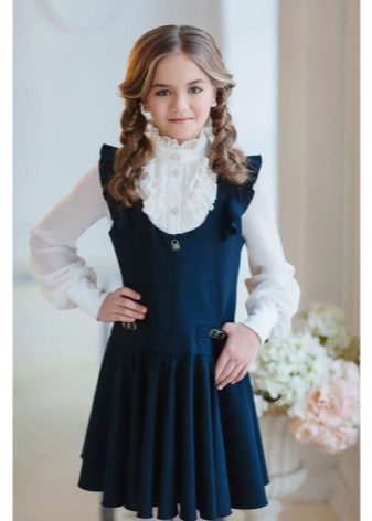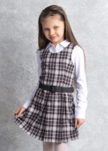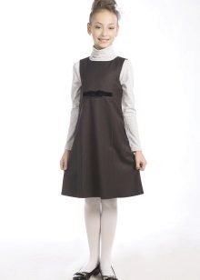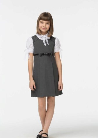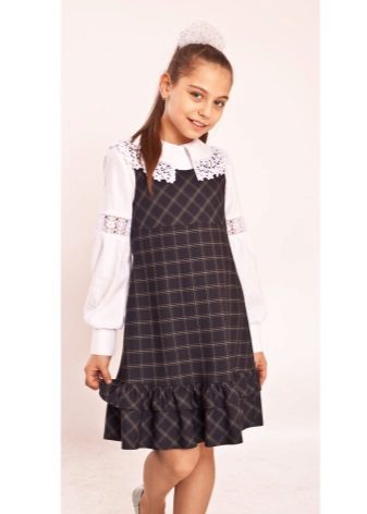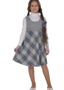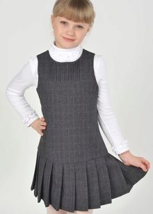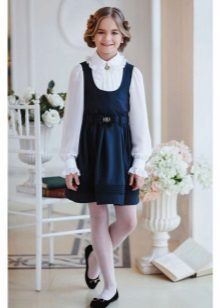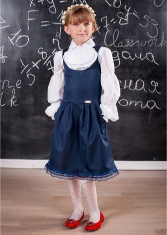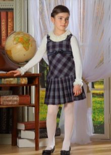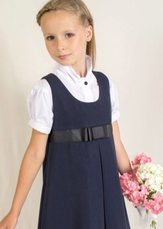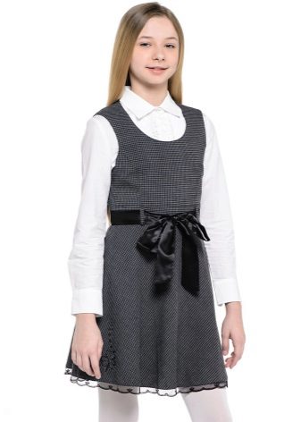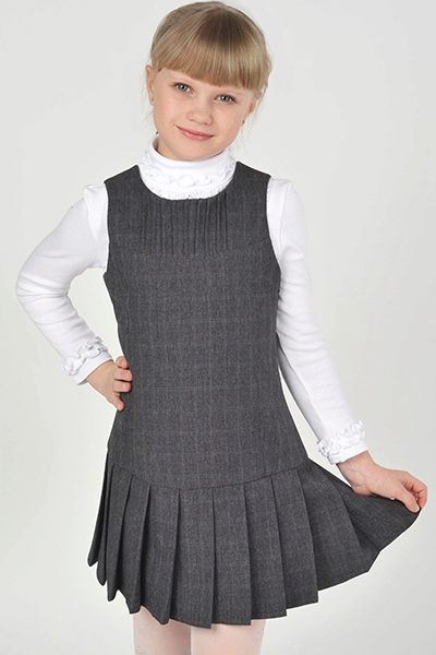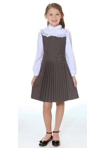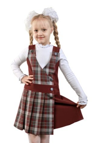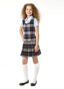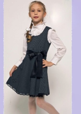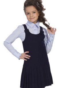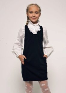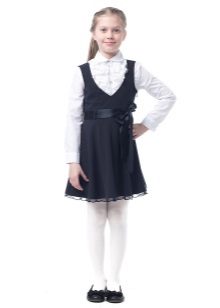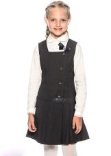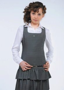 - The durable and durable material of which the sundress is made is preferable, since the child spends most of the time at school and, accordingly, in uniform.