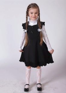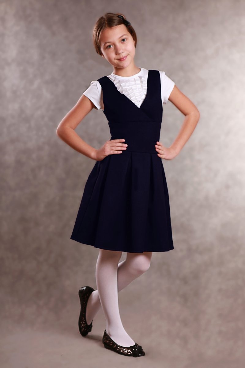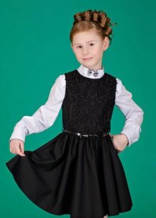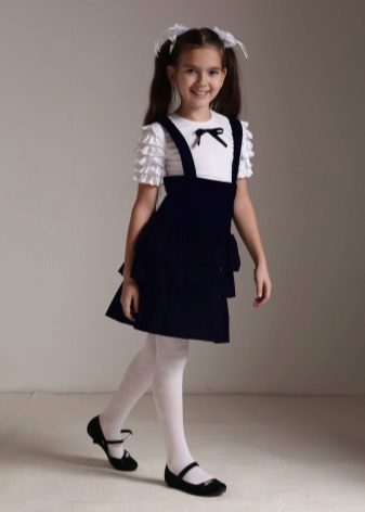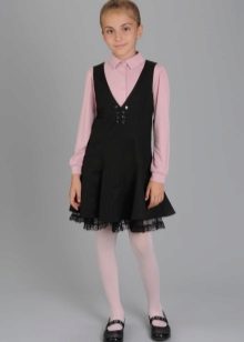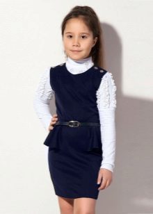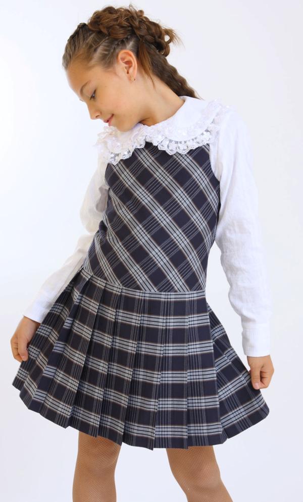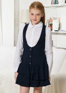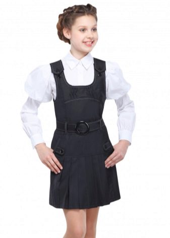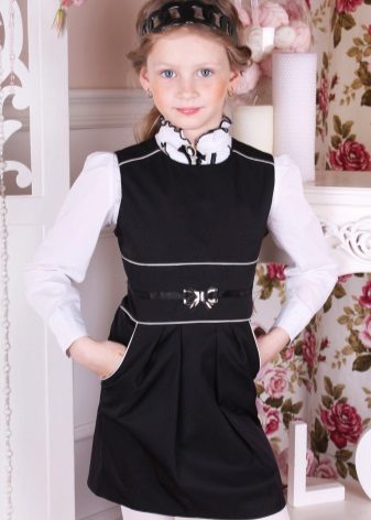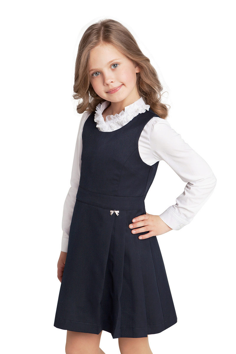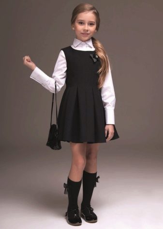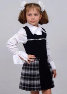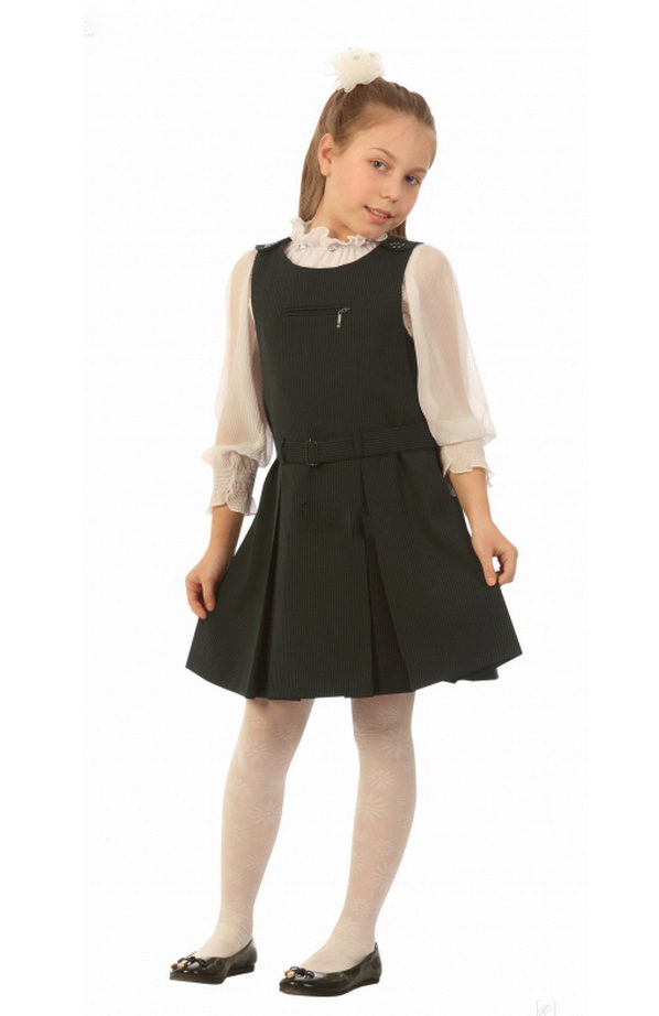 - The durable and durable material of which the sundress is made is preferable, since the child spends most of the time at school and, accordingly, in uniform.