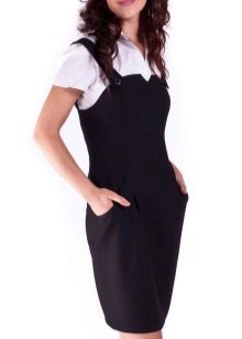 - A sundress of a direct cut on wide straps of "washing" or "vest" look. This model varies in length and trim details - patch pockets, flaps, belt loops, shoulder straps, ruffles, decorative bows, bow ties, etc.