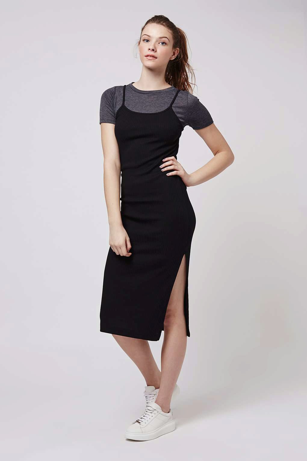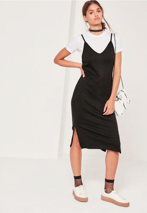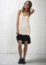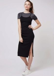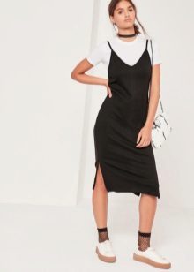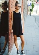 - This lightweight black sporty sundress is perfect for every day. You can wear it not only with sandals, but also with sneakers, sneakers, slip-ons. Do not forget to add an image with a clutch and sunglasses.