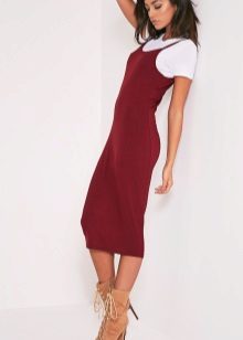 You can wear knitted sarafans with different clothes that would be appropriate in any given situation. For example, for an image in casual style can be combined with any comfortable shoes. These can be flat sandals, sneakers, sneakers, espadrilles.