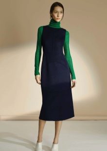 If you want to wear a dress over a t-shirt, shirt or turtleneck, give preference to models in the style of minimalism. This technique is especially relevant for girls with a voluminous lower part of the figure.