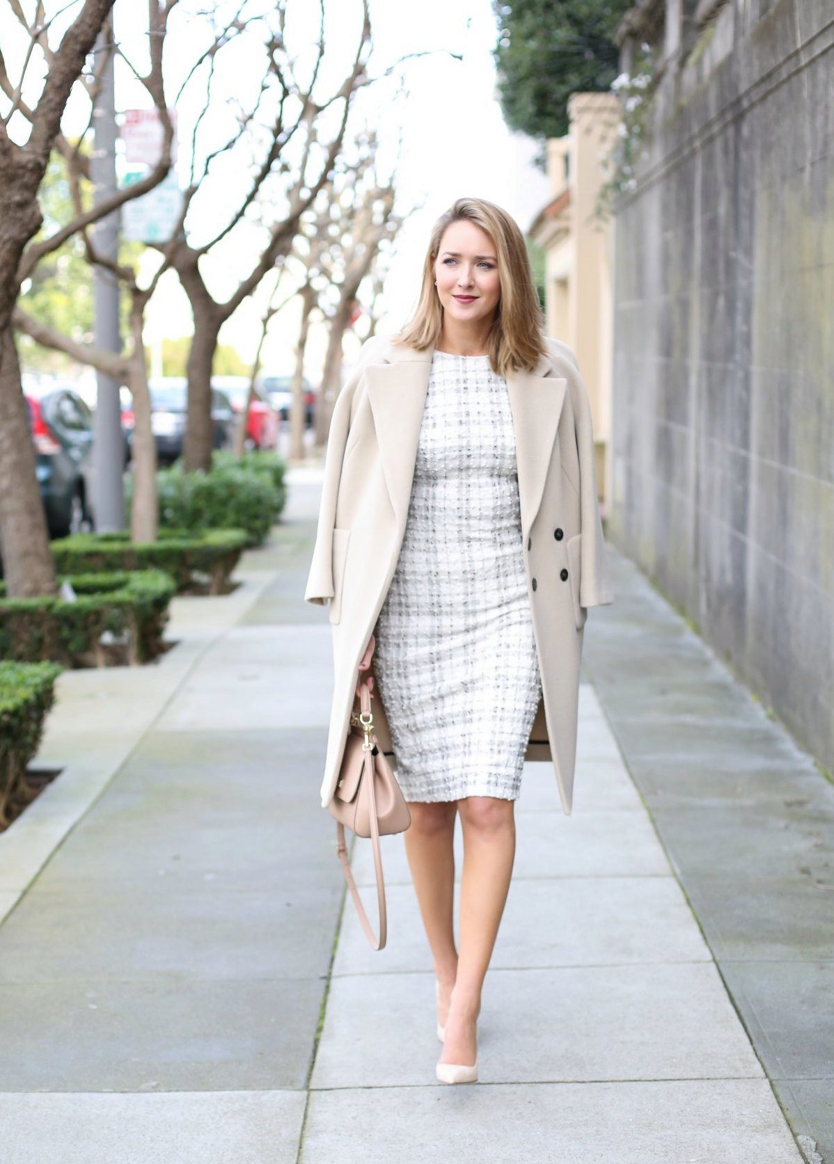 If it's cold outside, wear a classic-style cardigan, blazer, jacket or a light overcoat.