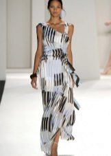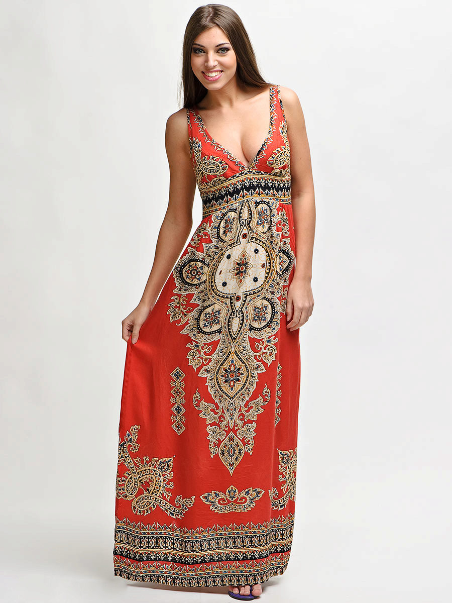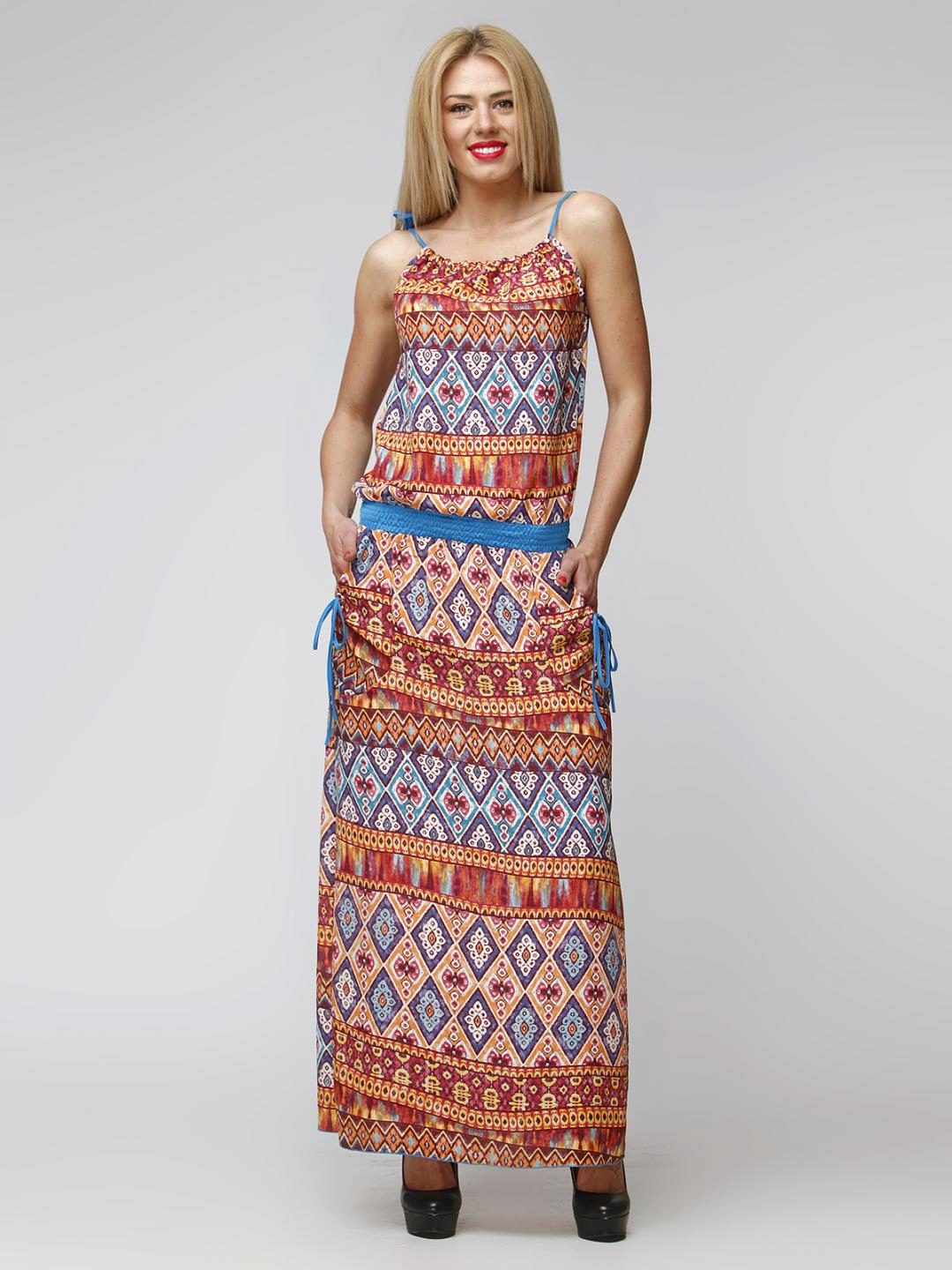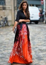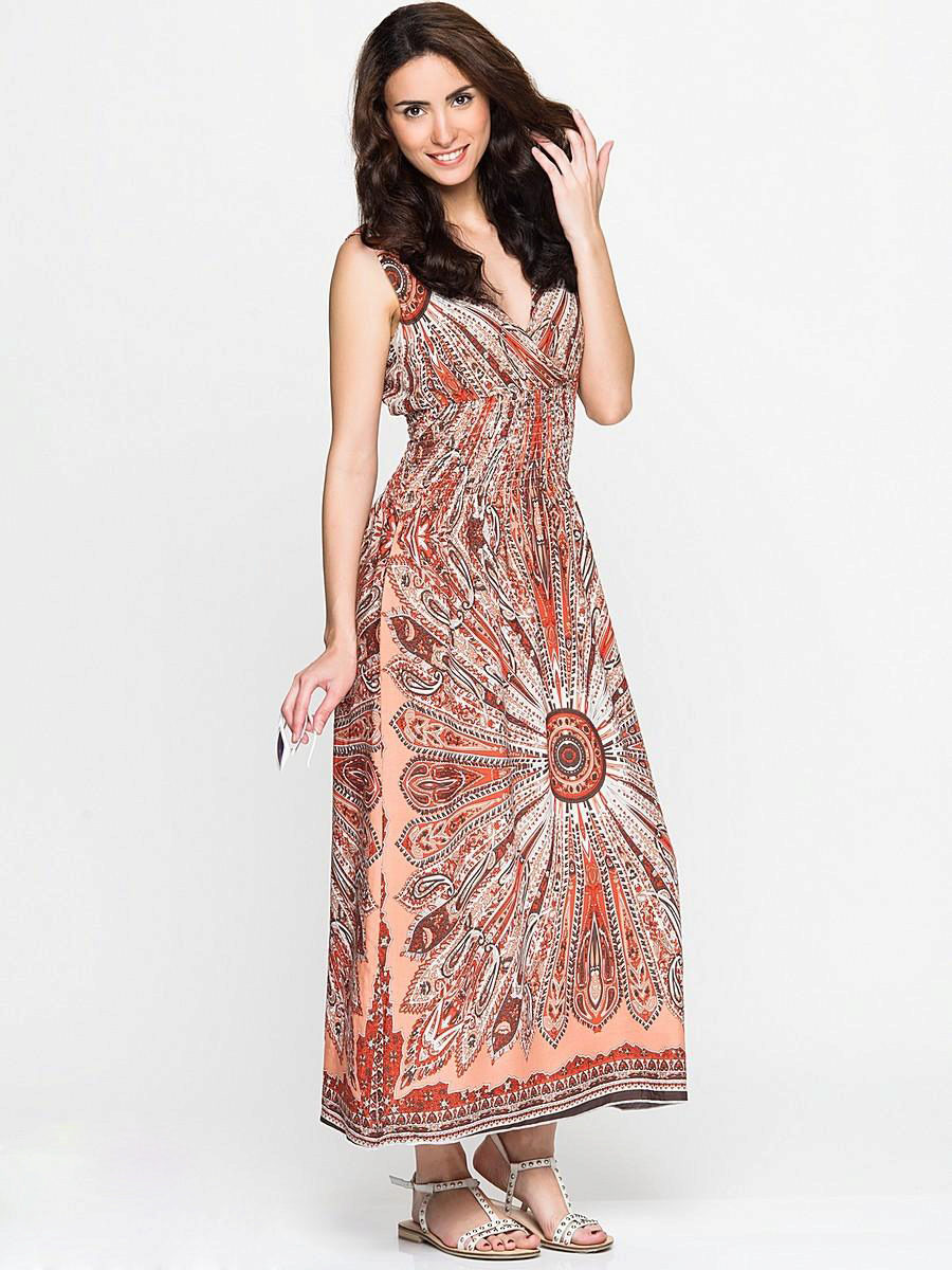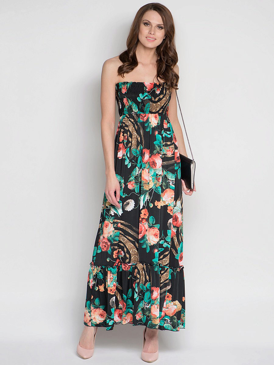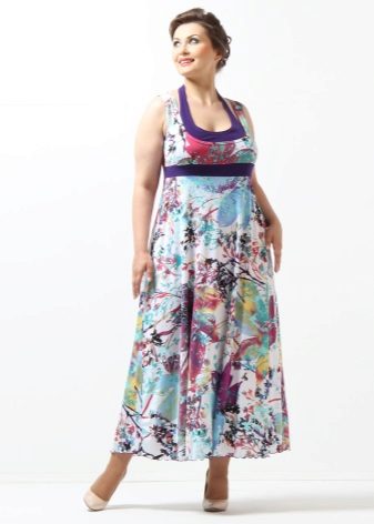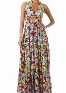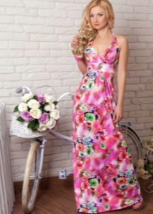 - A long fitted sundress with a flared skirt and top in the form of a bodice will be an excellent summer option. And the colorful ornament will give the product a mysterious look in the oriental style.