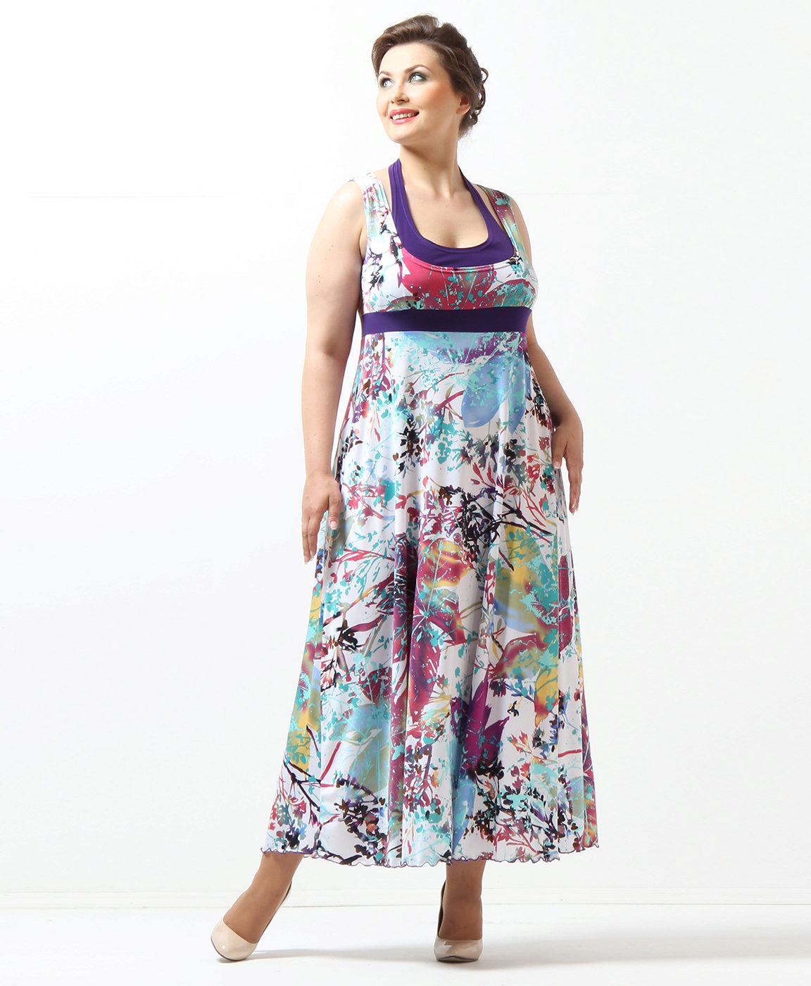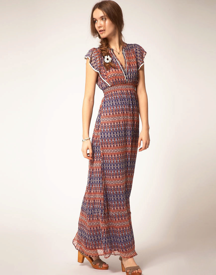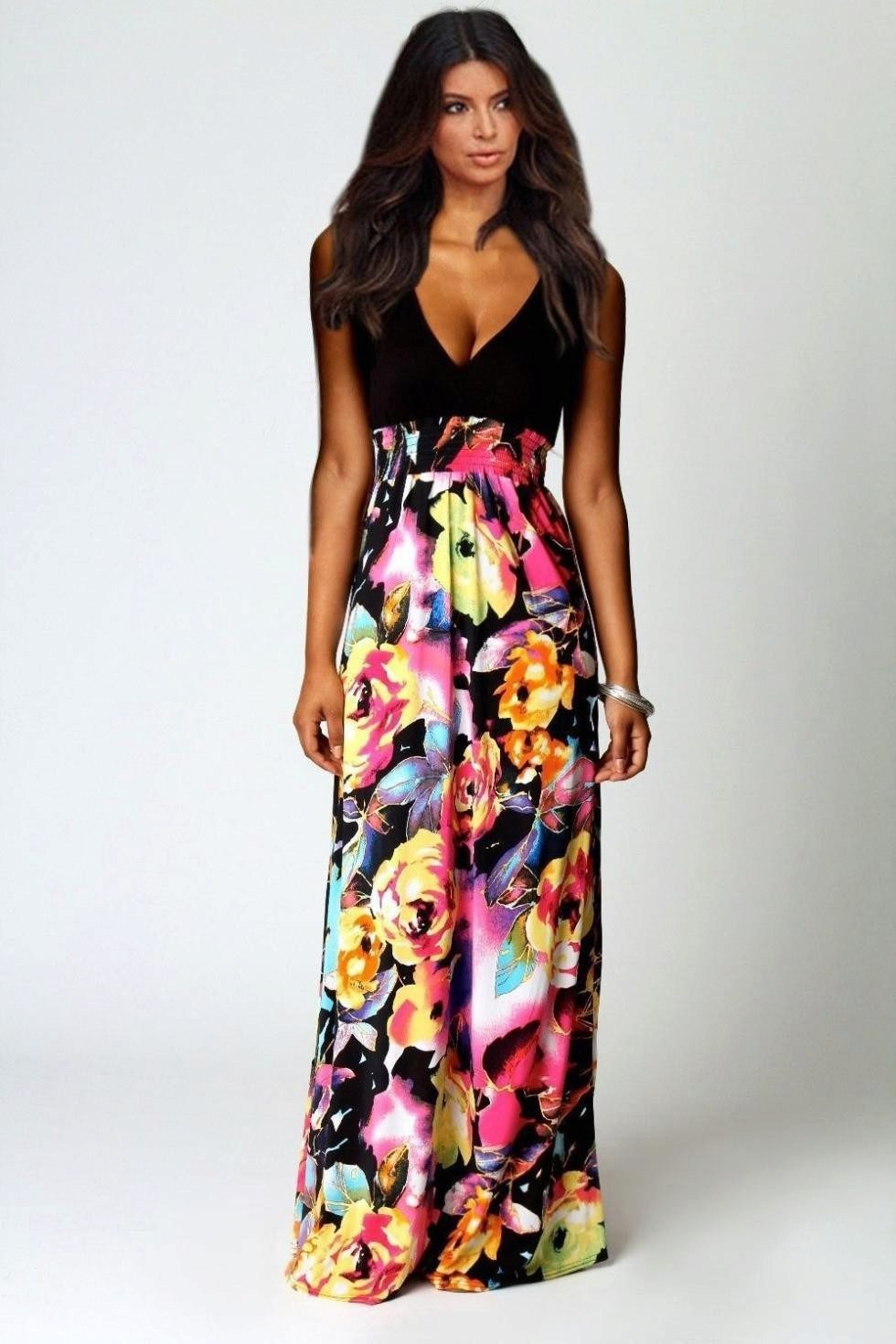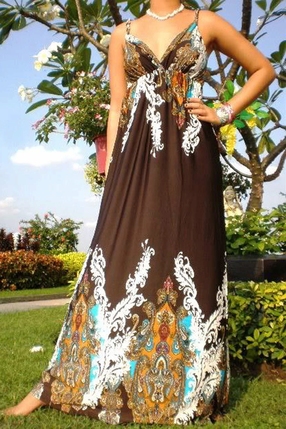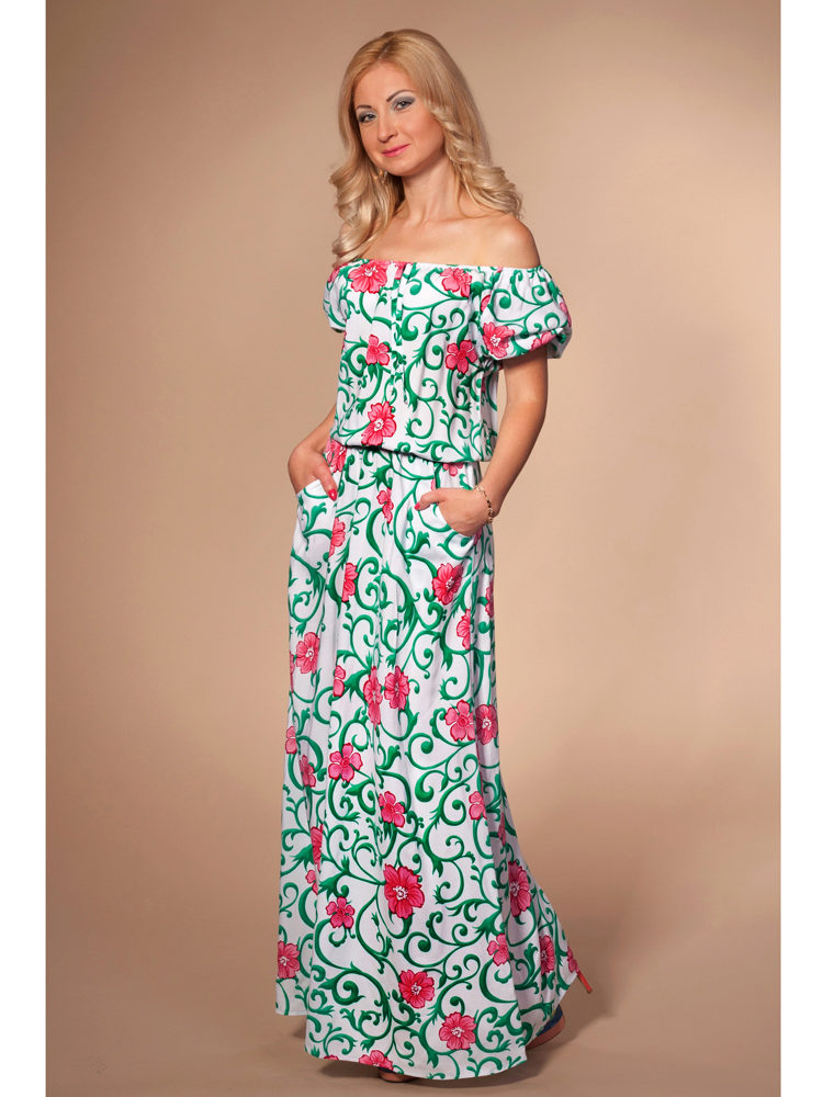 - A long fitted sundress with a flared skirt and top in the form of a bodice will be an excellent summer option. And the colorful ornament will give the product a mysterious look in the oriental style.